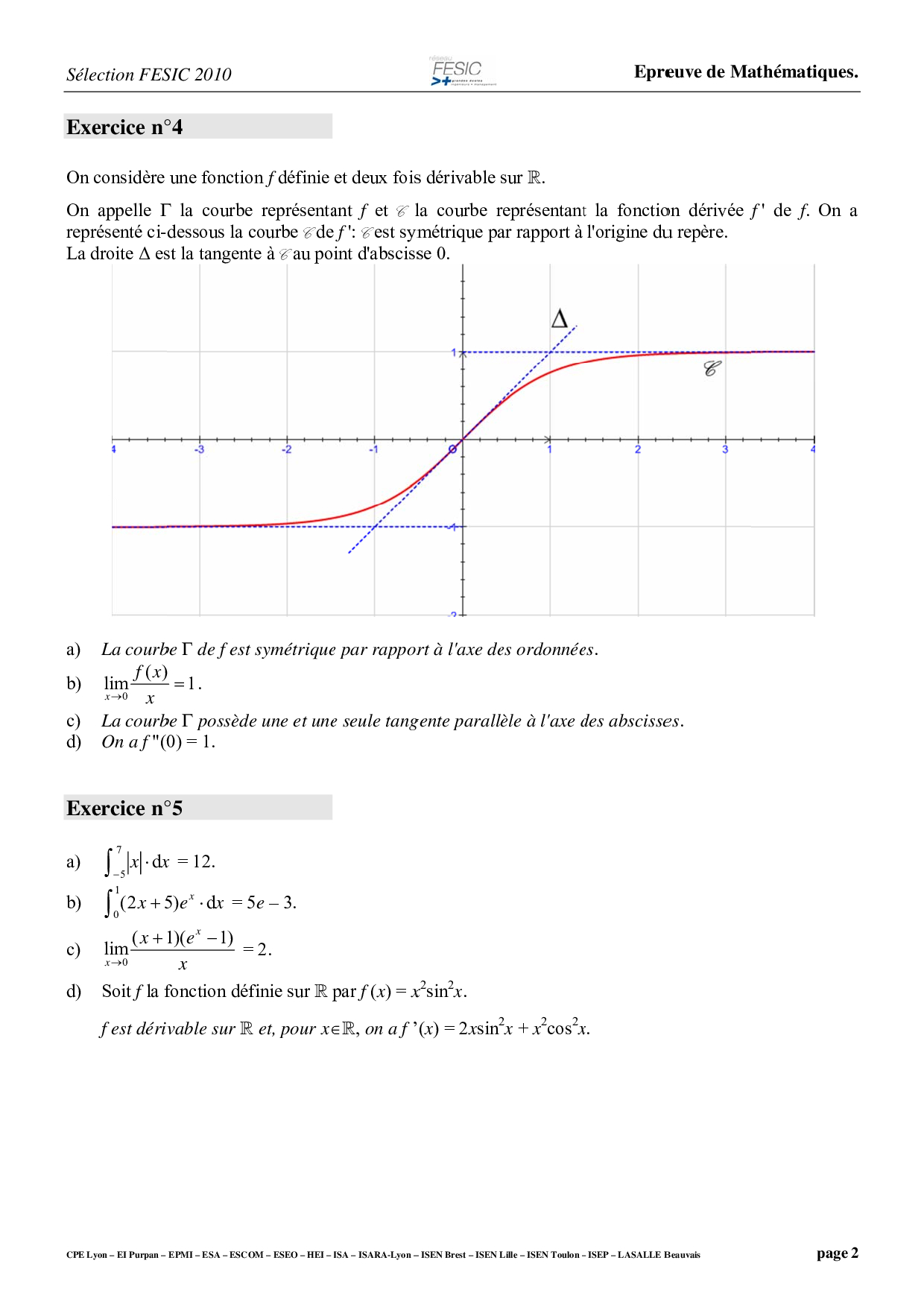 Concours PUISSANCE ALPHA 2010 - Mathématiques (Sujet)