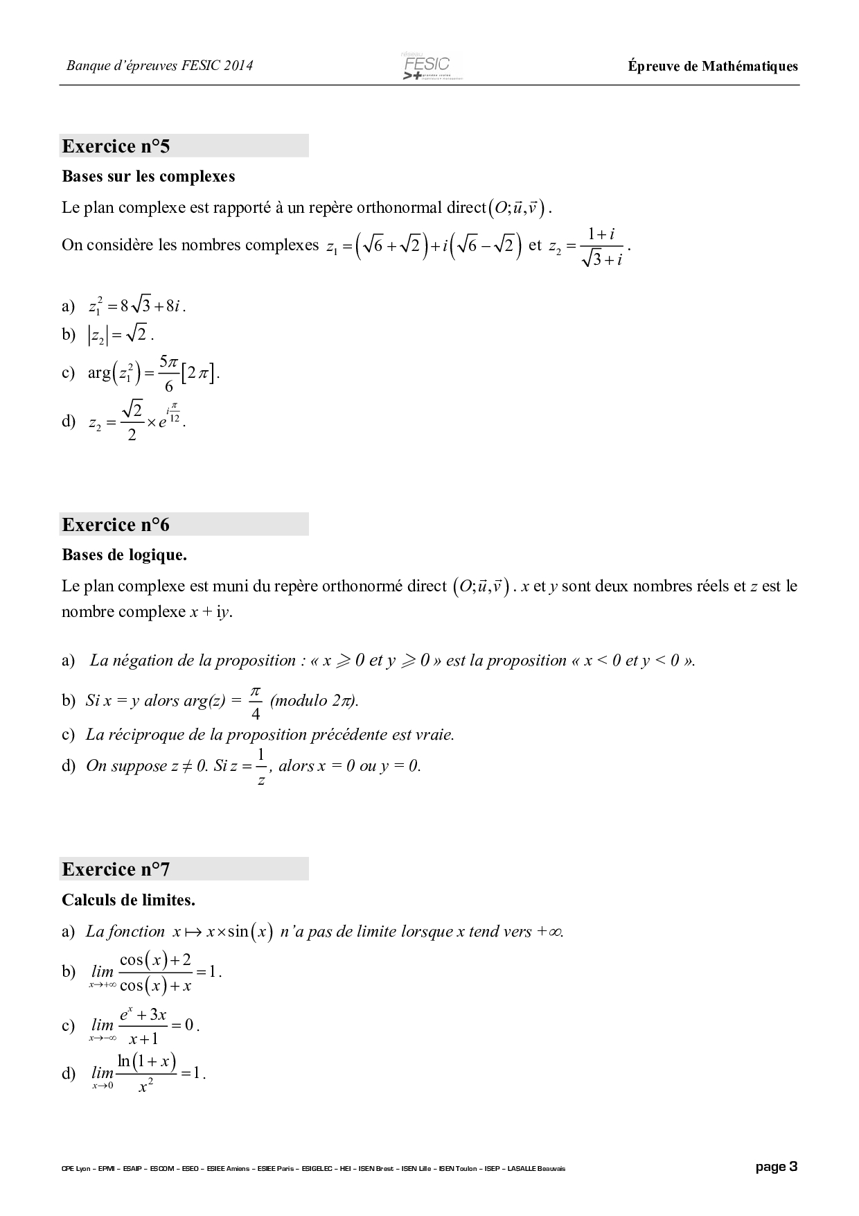 Concours PUISSANCE ALPHA 2014 - Mathématiques (Sujet)