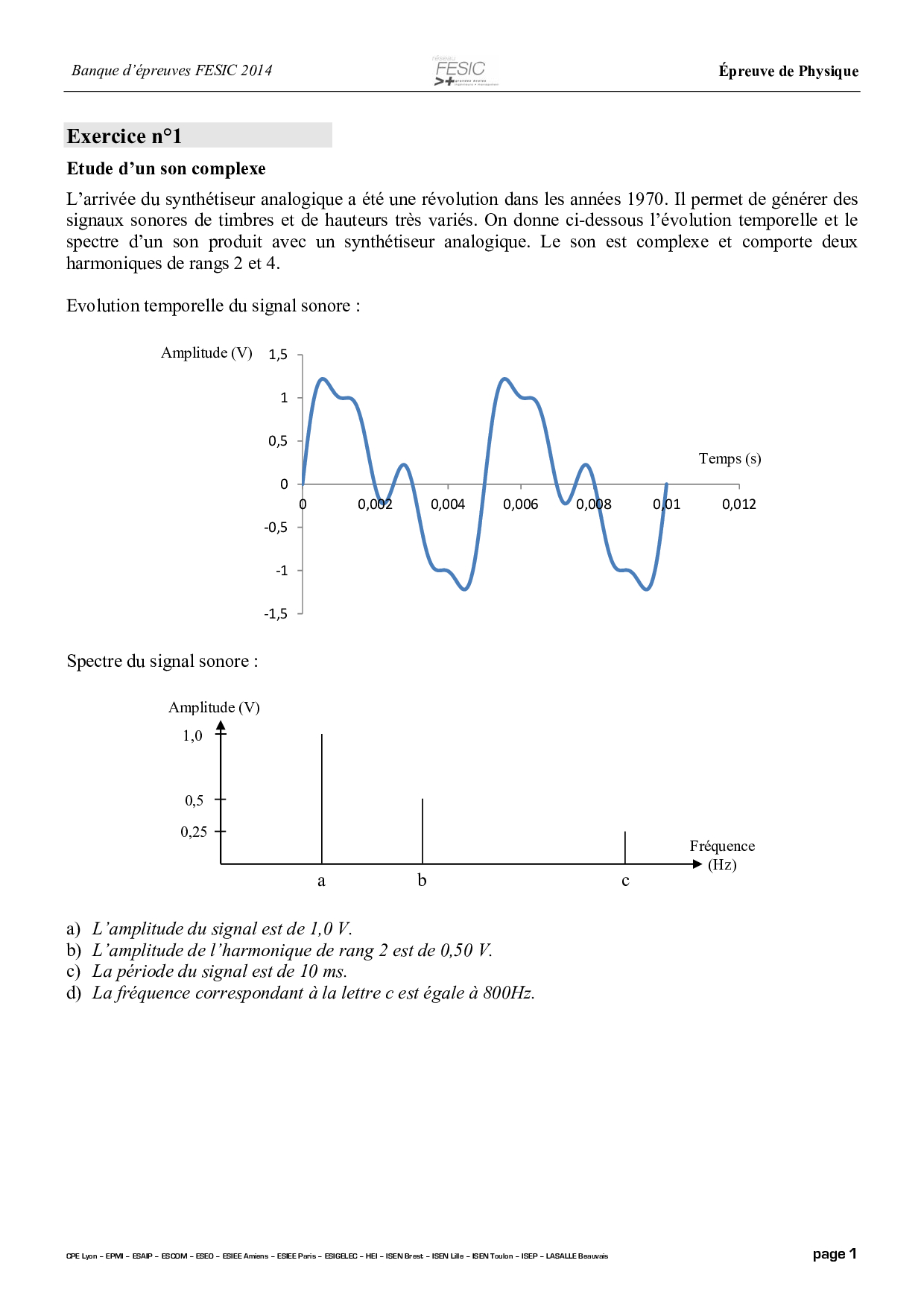 Concours PUISSANCE ALPHA 2014 - Physique (Sujet)