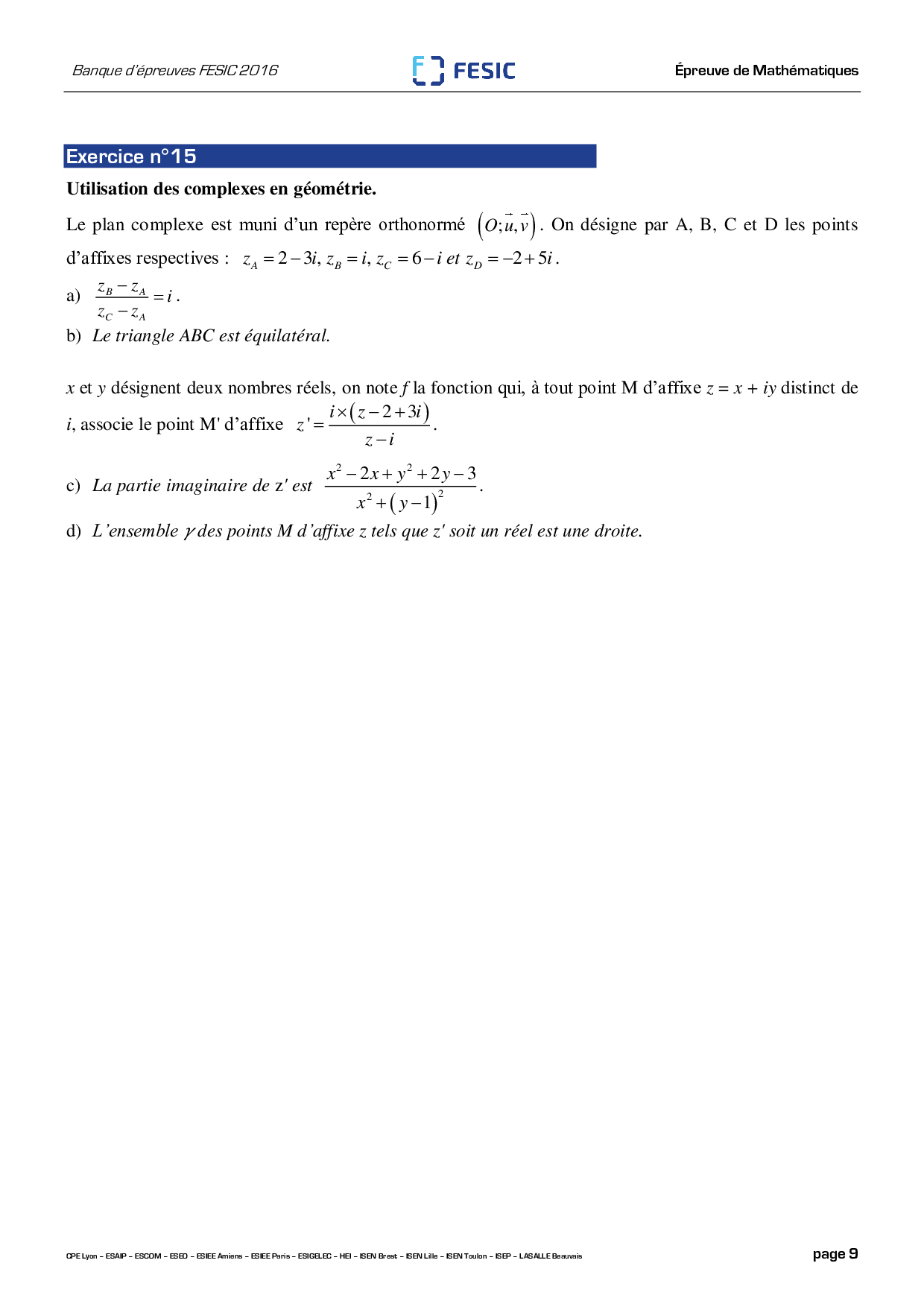 Concours PUISSANCE ALPHA 2016 - Mathématiques (Sujet)