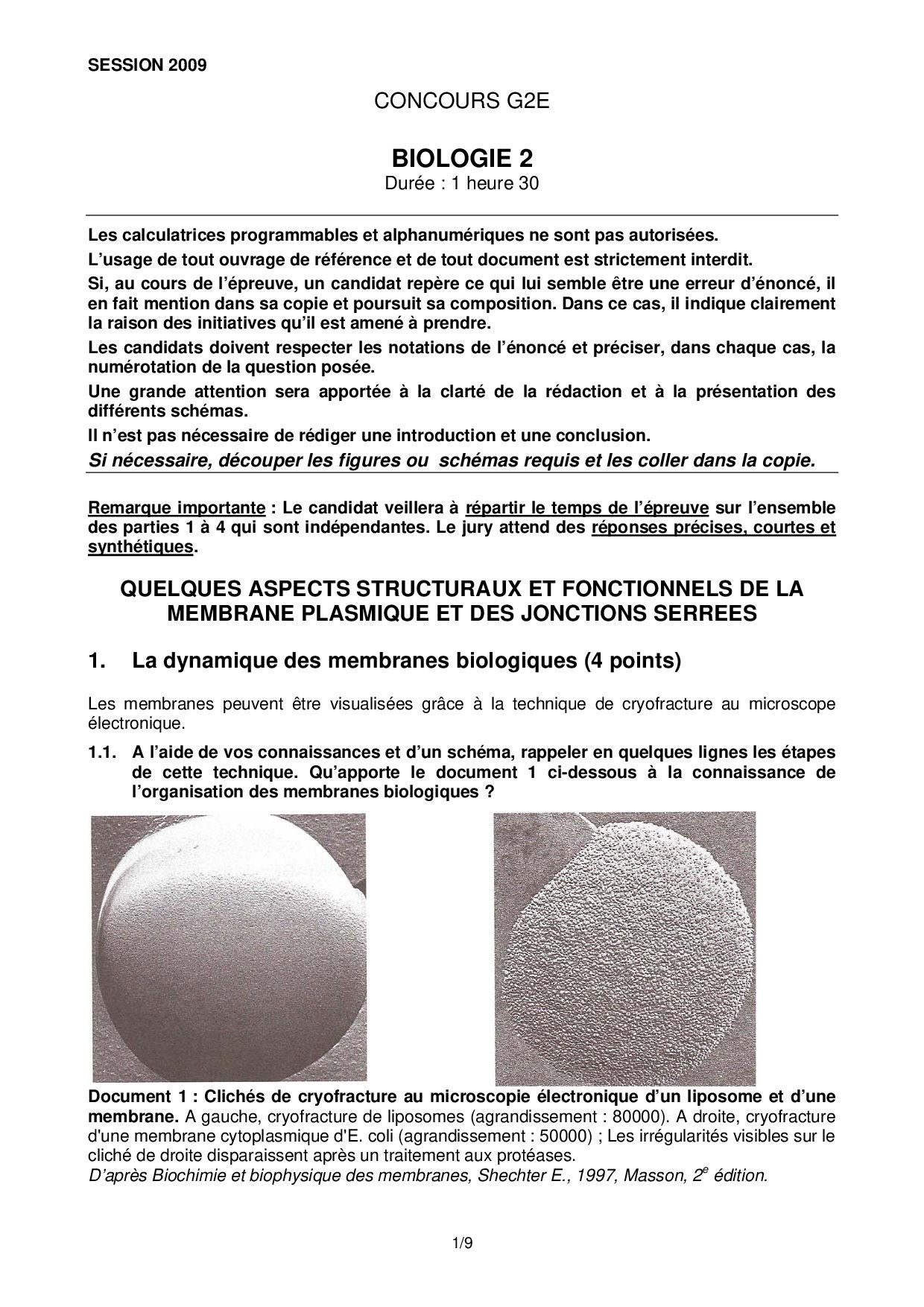 Concours G2E 2009 - Biologie 2 (Sujet)