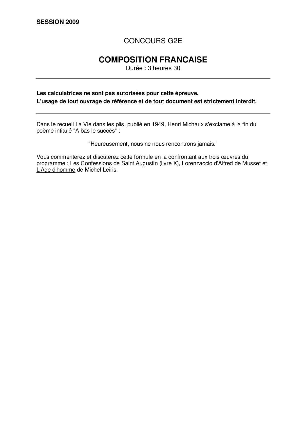 Concours G2E 2009 - Français (Sujet)