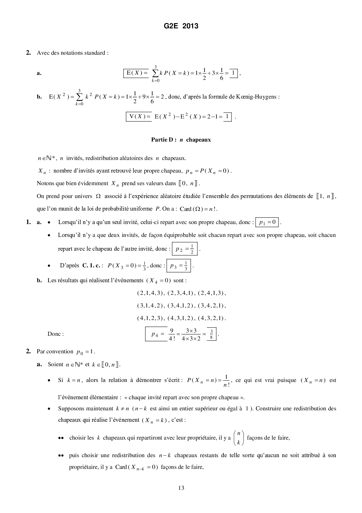 Concours G2E 2013 - Mathématiques (Corrigé)