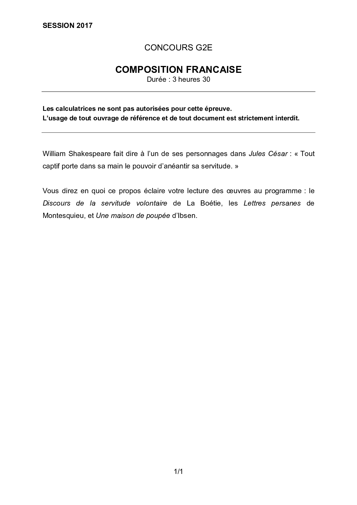 Concours G2E 2017 - Français (Sujet)