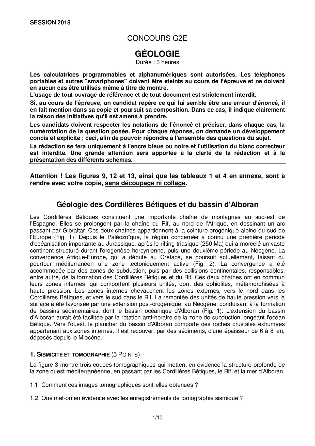 Concours G2E 2018 - Géologie (Sujet)