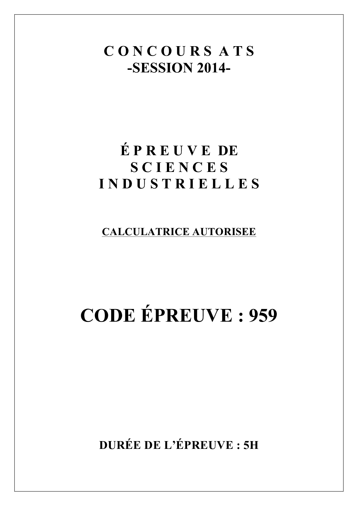 Concours ATS 2014 - Sciences Industrielles (Sujet)
