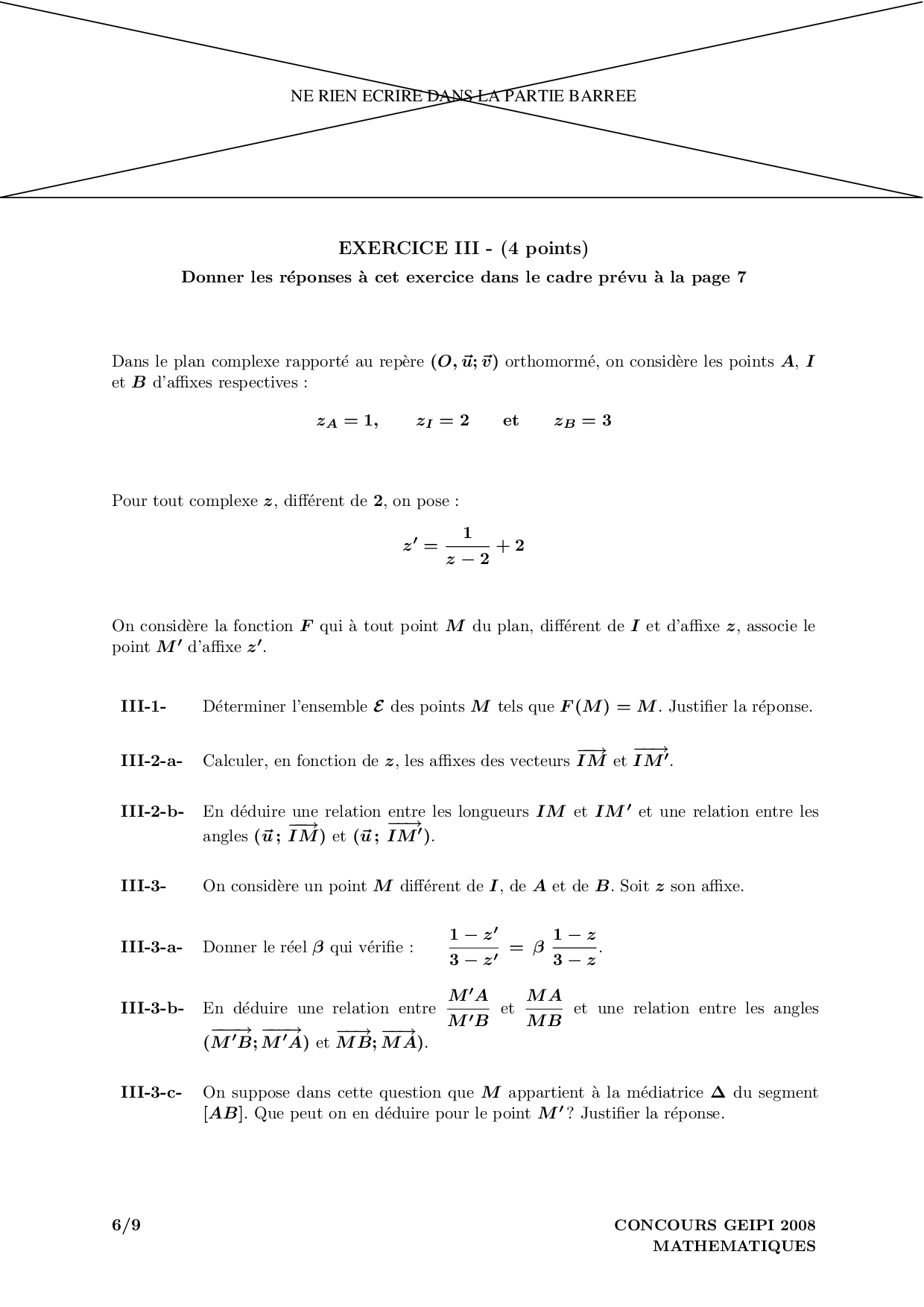 Concours Geipi Polytech 2008 - Mathématiques (Sujet)