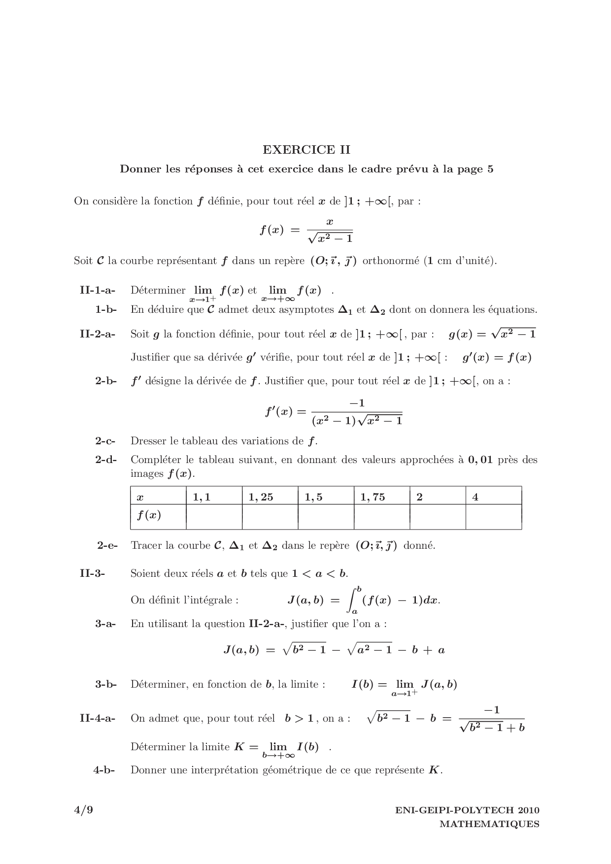 Concours Geipi Polytech 2010 - Mathématiques (Corrigé)