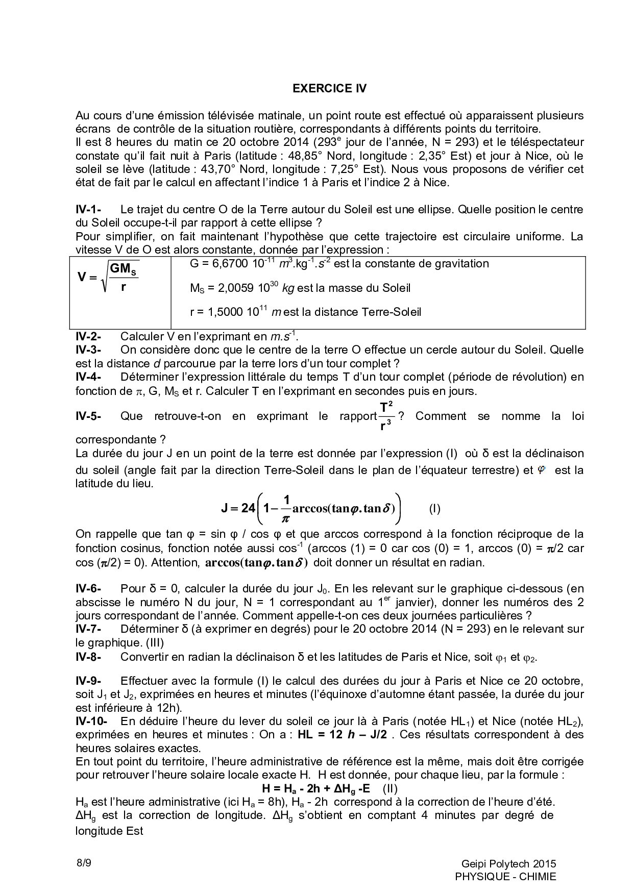 Concours Geipi Polytech 2015 Série S - Physique-Chimie (Sujet)