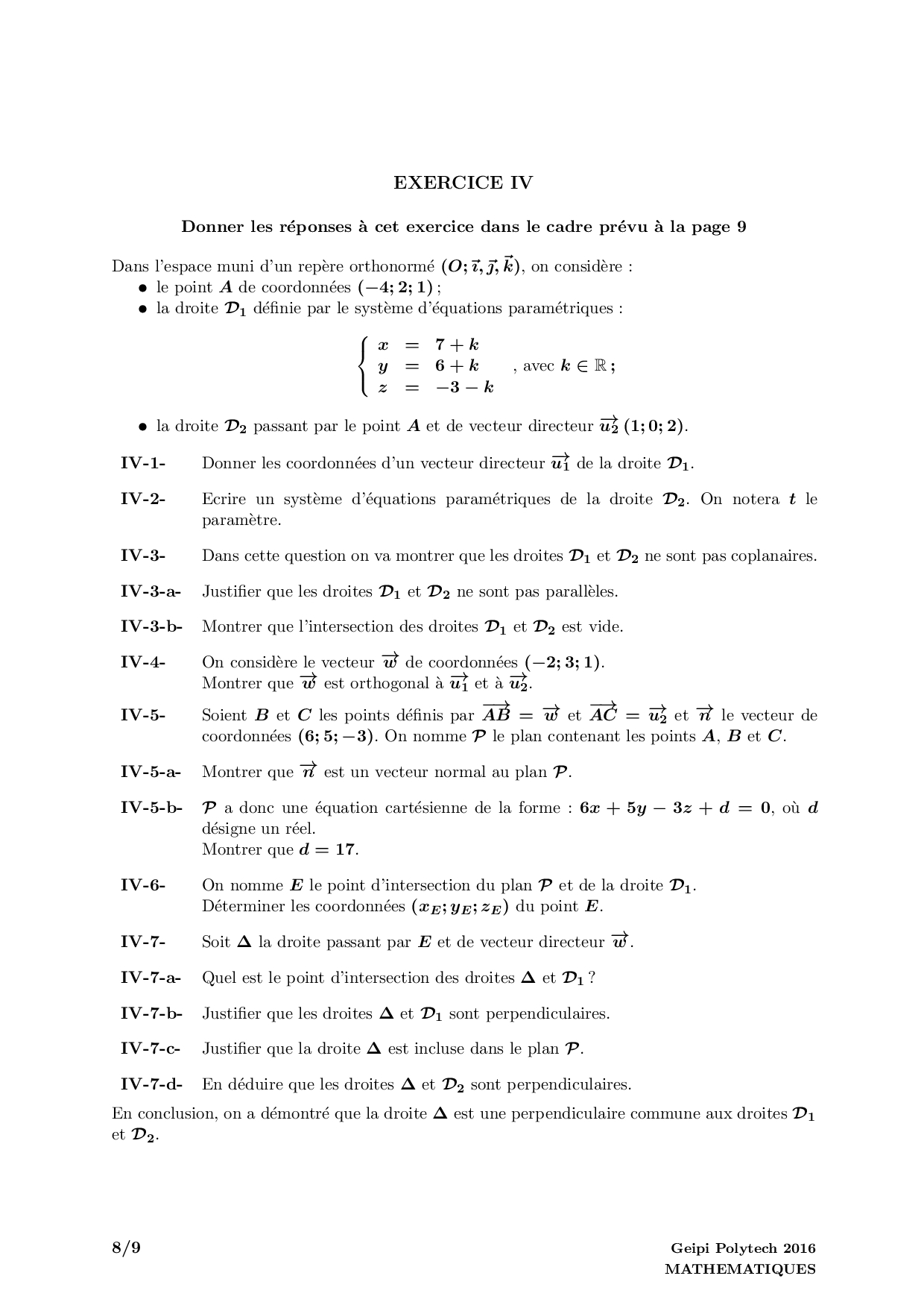 Concours Geipi Polytech 2016 Série S - Mathématiques (Corrigé)