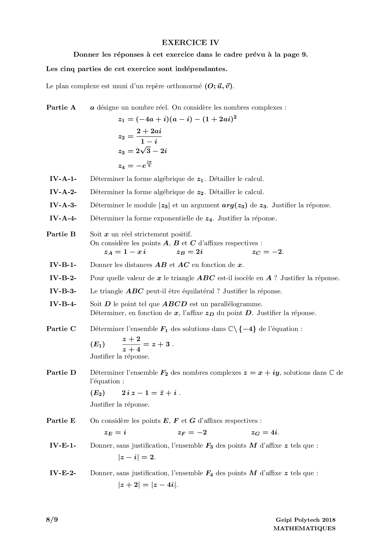 Concours Geipi Polytech 2018 Série S - Mathématiques (Sujet)