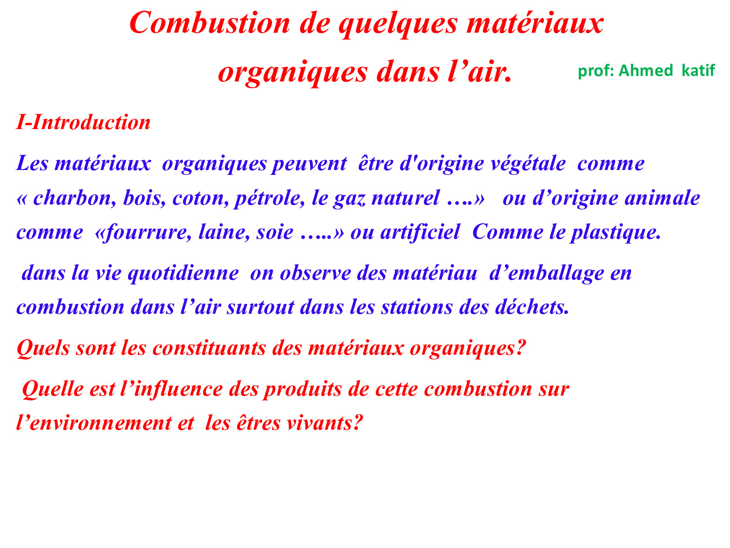 Combustion des matériaux organiques dans l’air - Cours 3