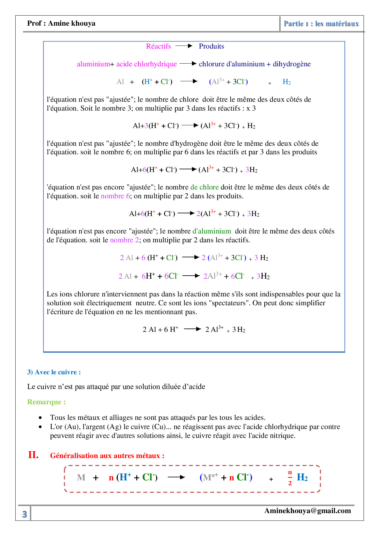 Réactions de quelques métaux avec les solutions acides et basiques - Cours 2