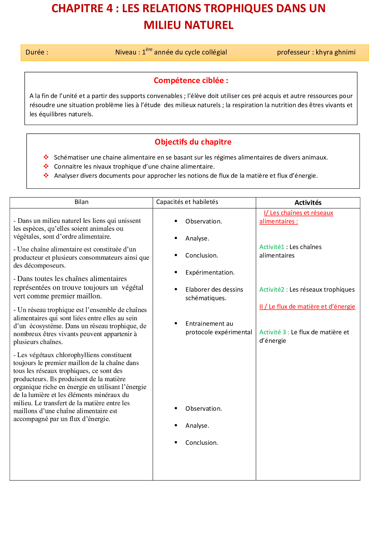 Les relations trophiques dans un milieu naturel - Fiche pédagogique