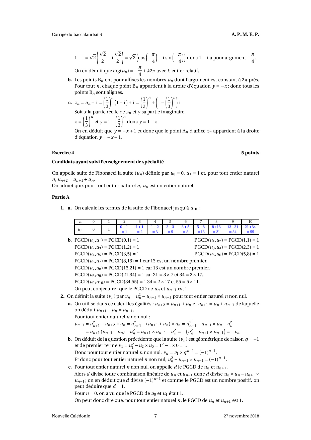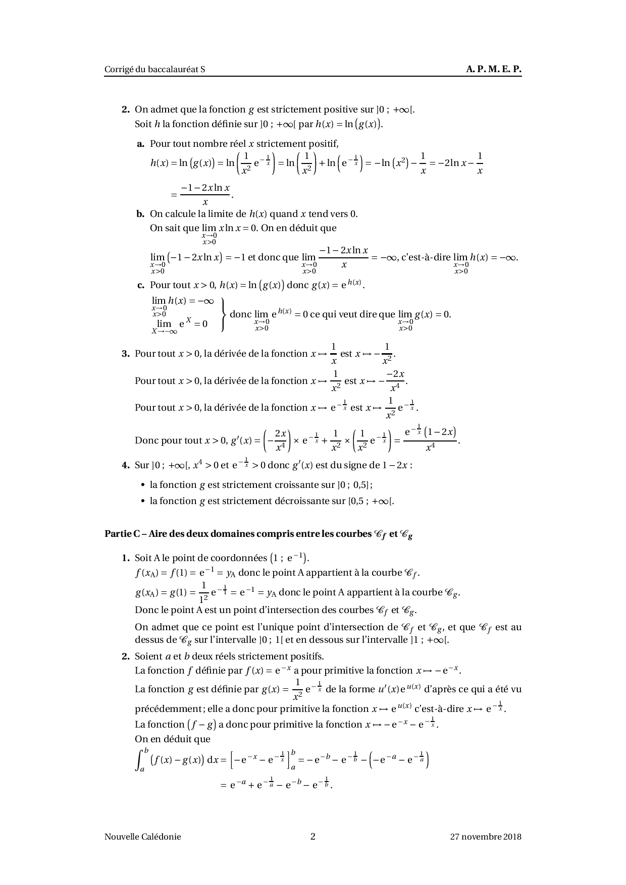 Annale Maths Bac S Nouvelle Calédonie novembre 2018 - Corrigé