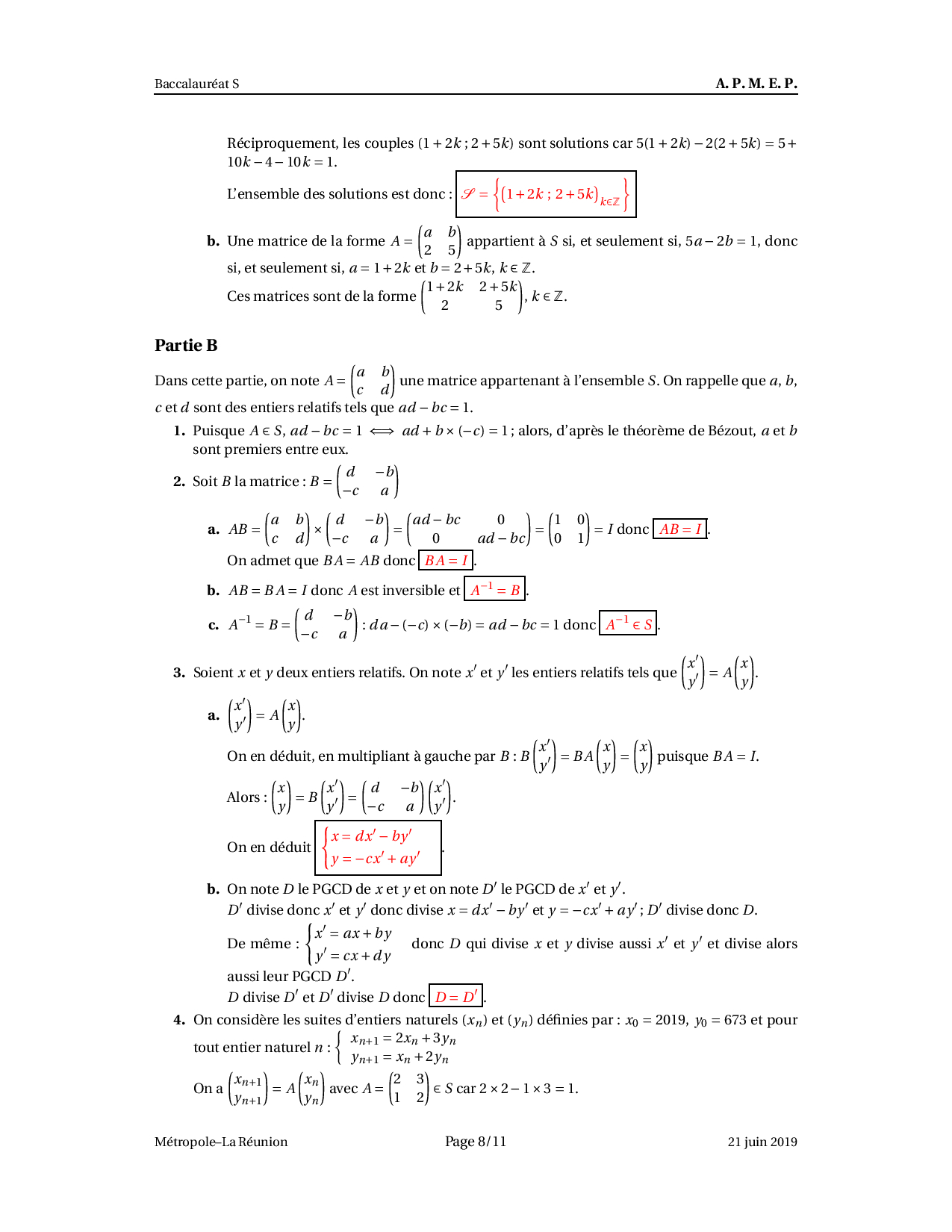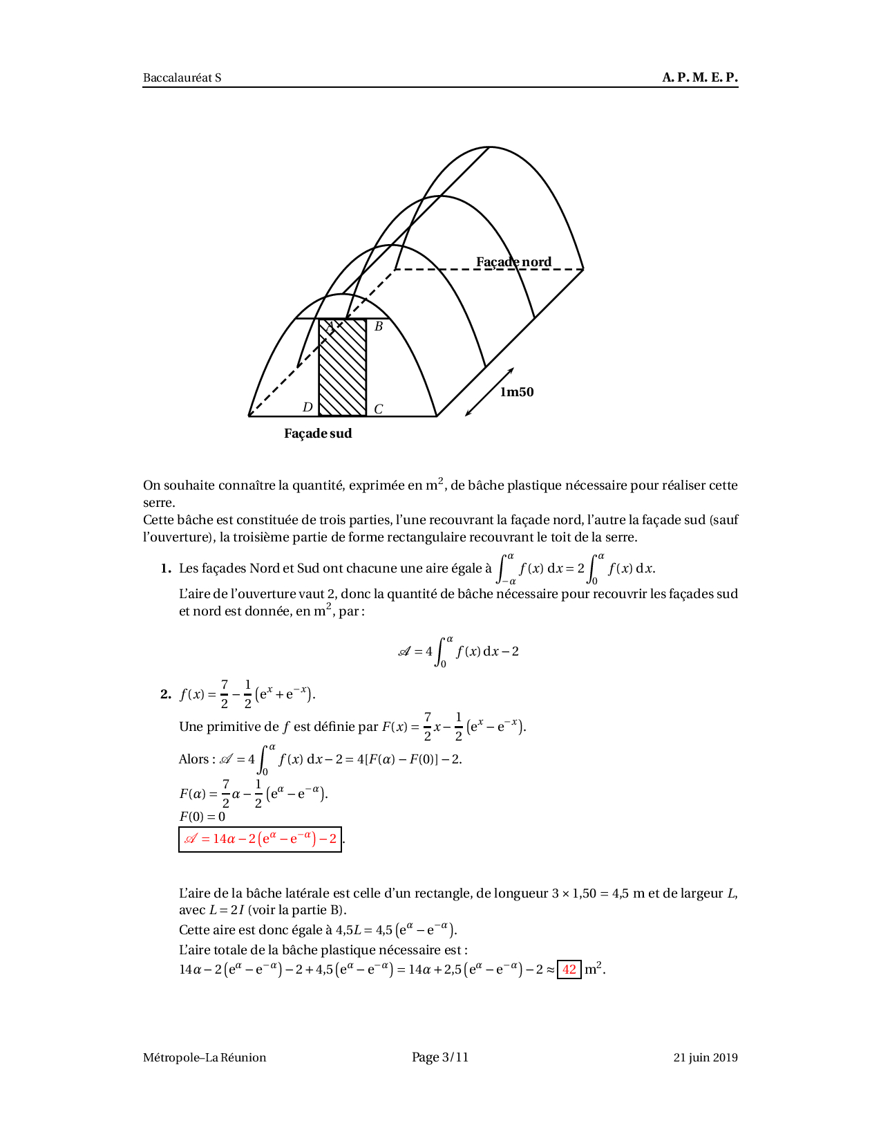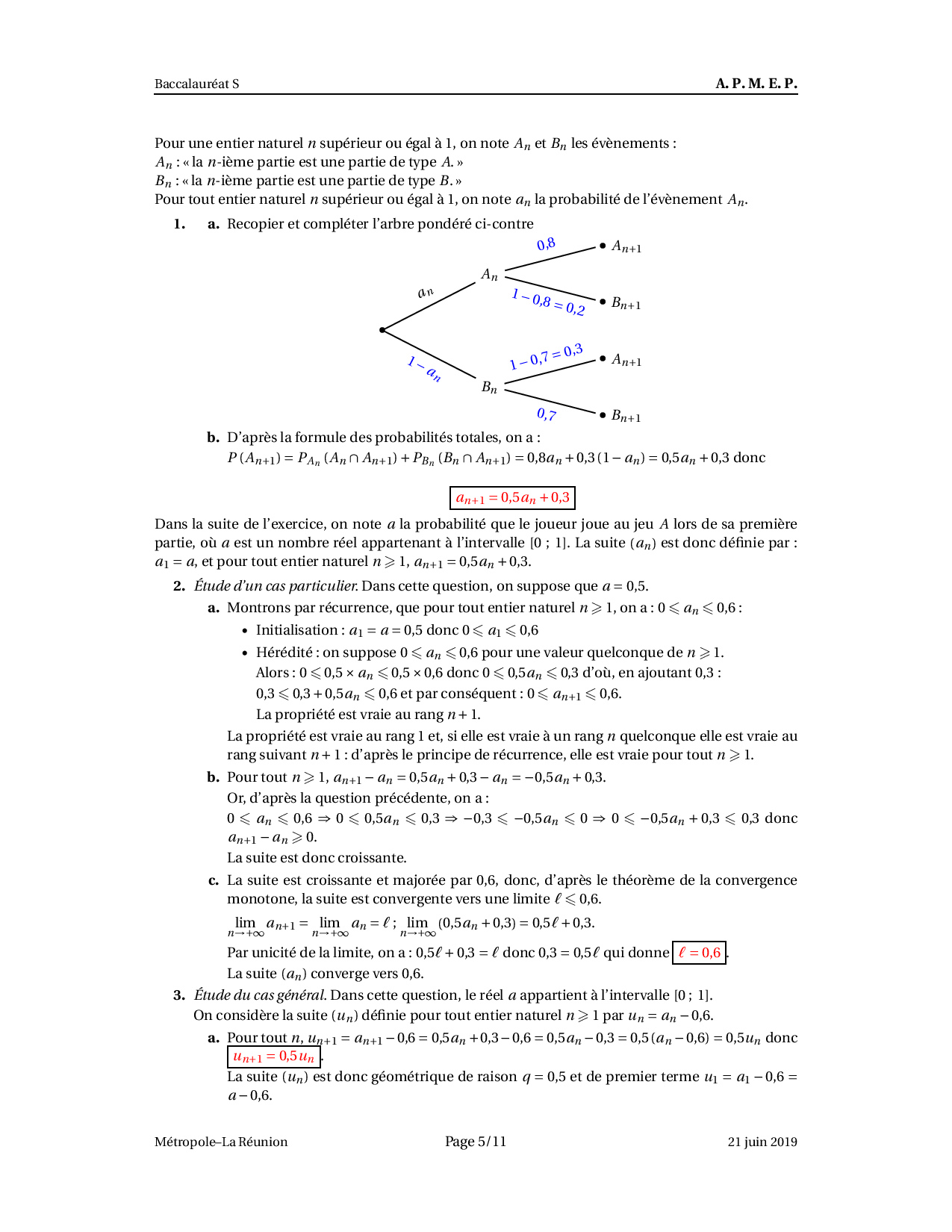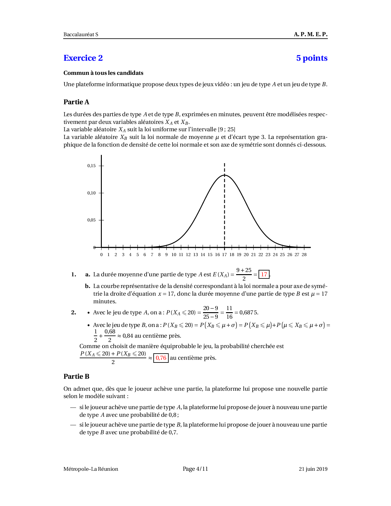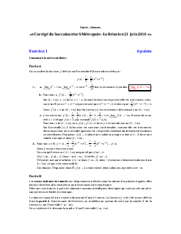 Annale Maths Bac S Métropole - La Réunion juin 2019 - Corrigé