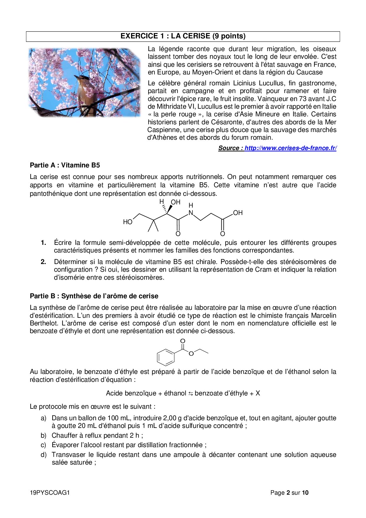 Bac S Physique Chimie Antilles-Guyane 2019 - Sujet