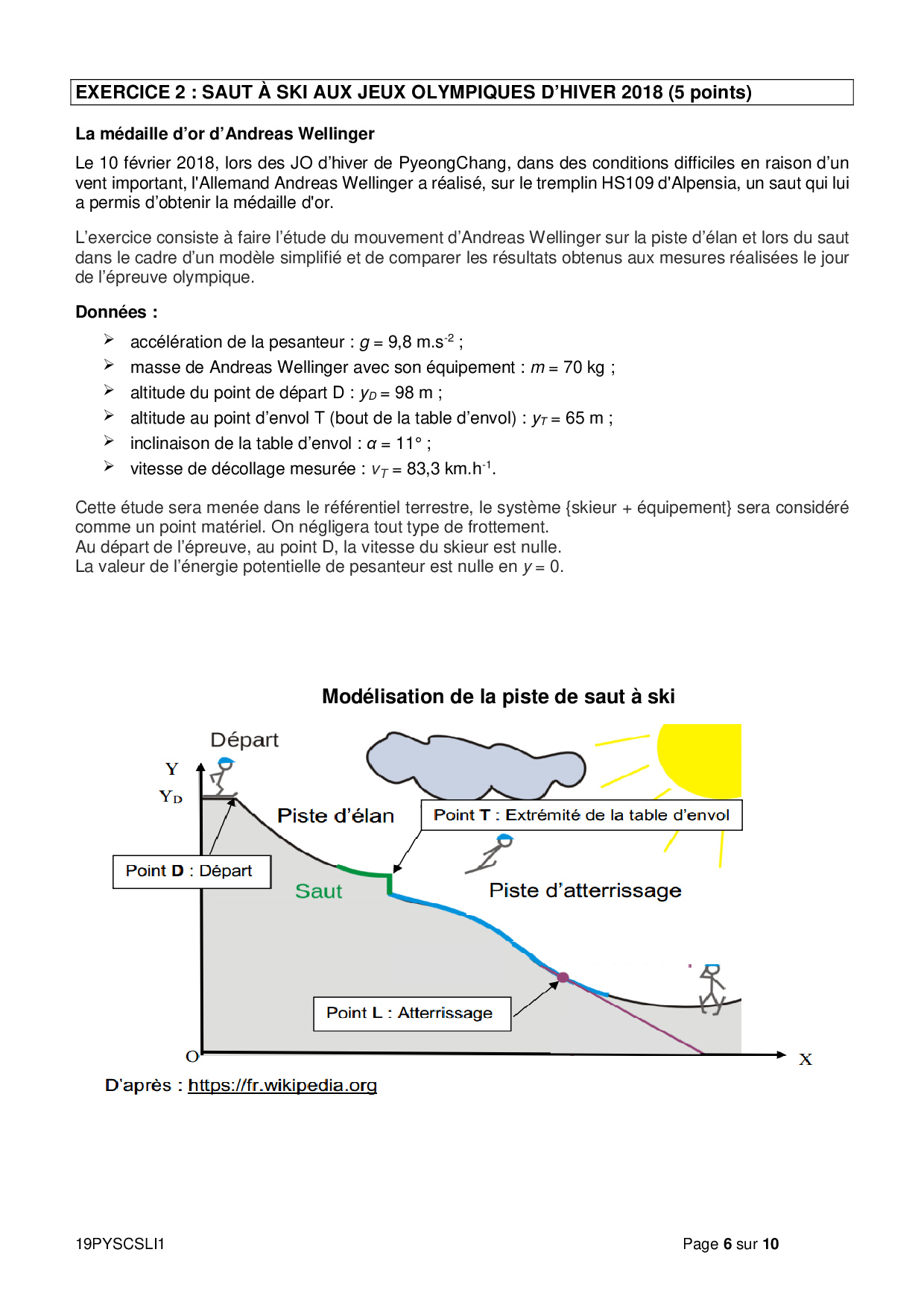 Bac S Physique Chimie (Spécialité) Liban 2019 - Sujet