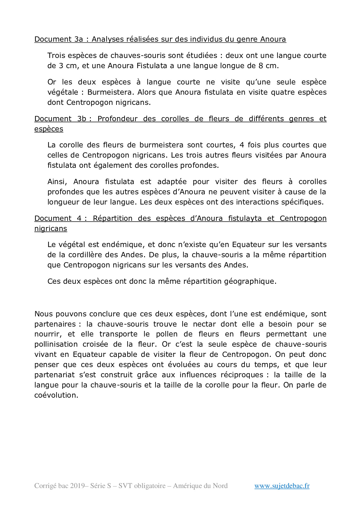 Bac S SVT Amérique du Nord 2019 - Corrigé