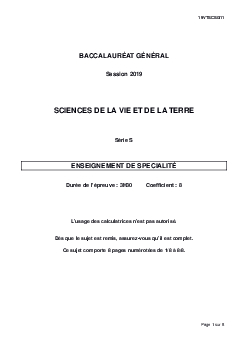 Bac S SVT (Spécialité) Centres Etrangers Afrique 2019 - Sujet