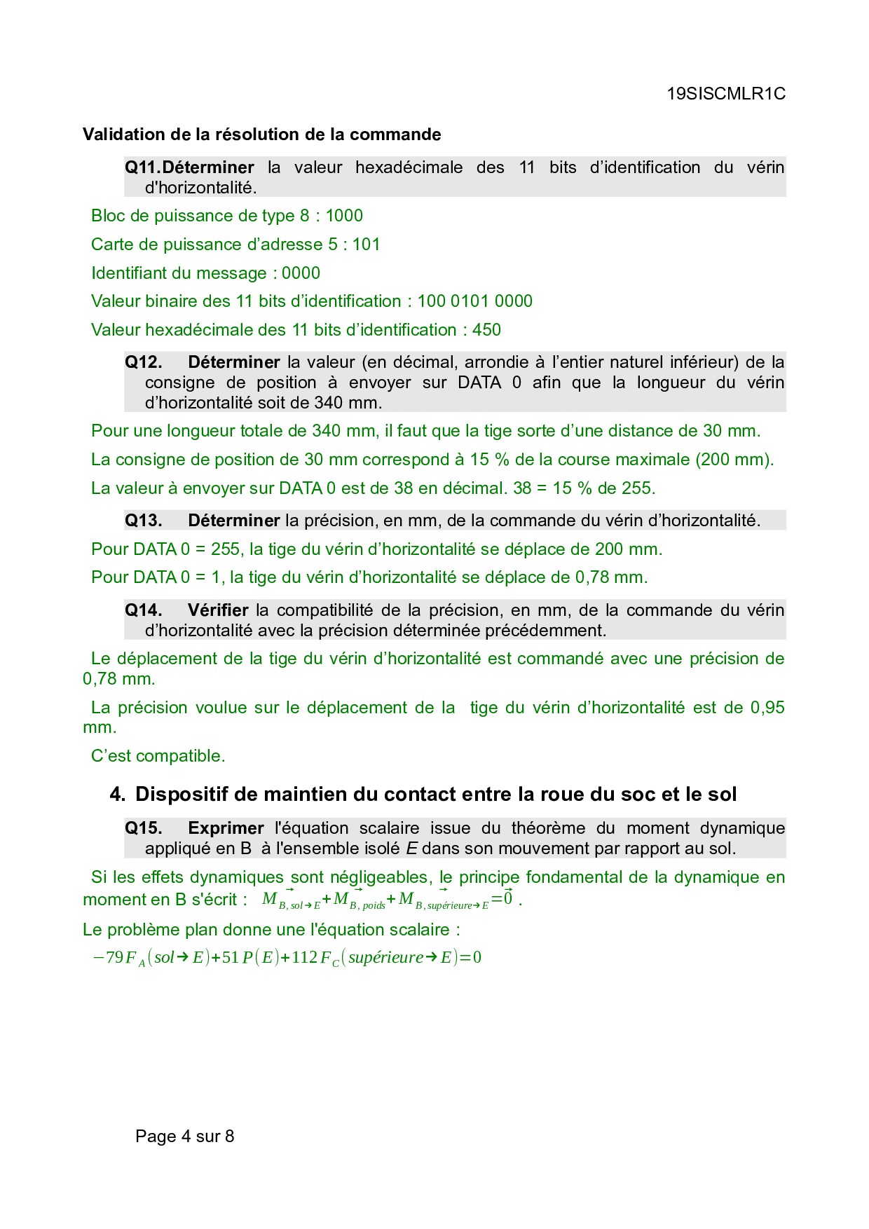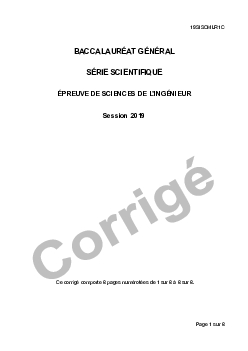 Bac S Sciences de l'Ingénieur (SI) Métropole 2019 - Corrigé