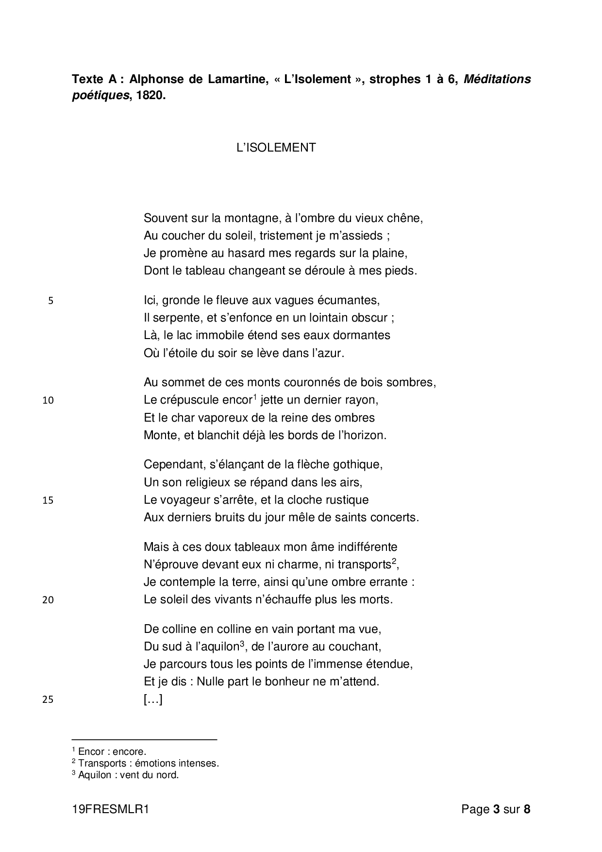 Bac S-ES Français (1ère) Métropole 2019 - Sujet