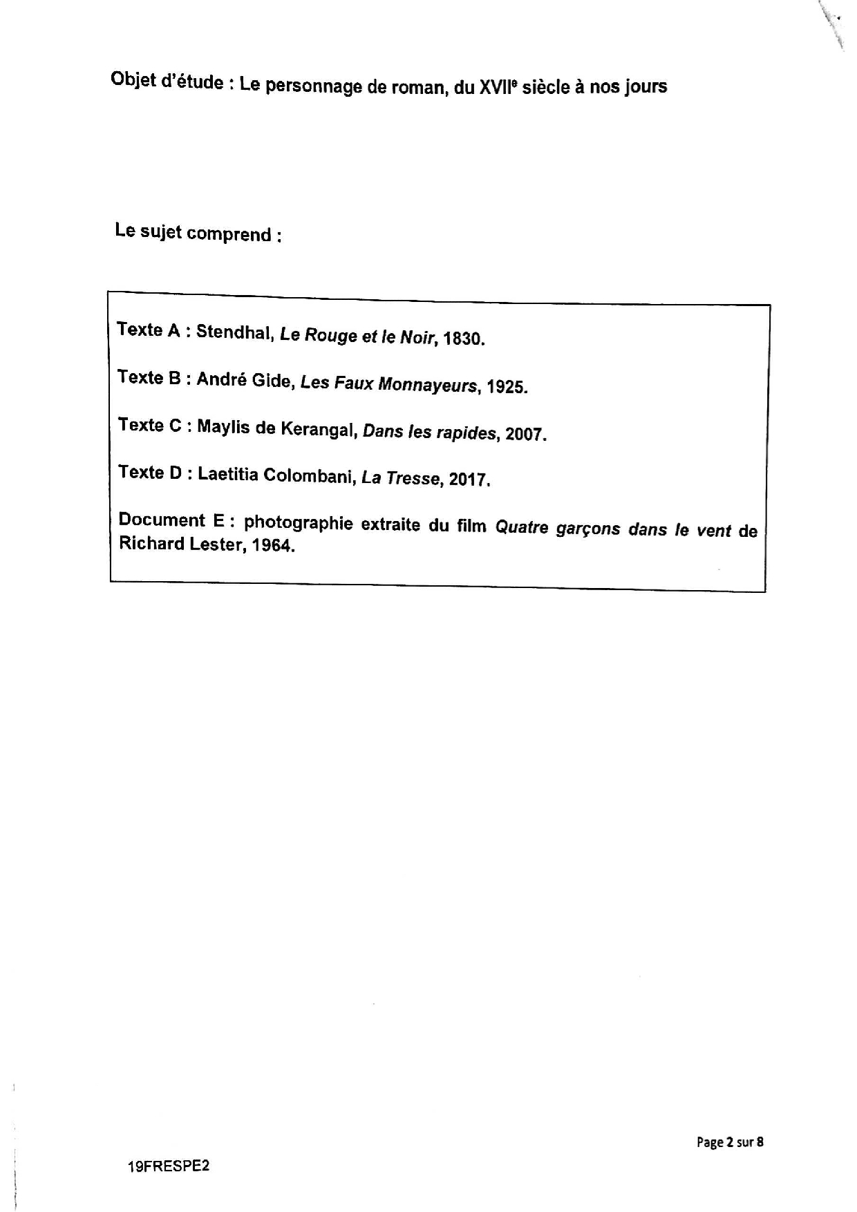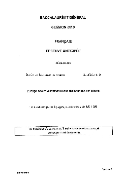 Bac S-ES Français (1ère) Moyen-Orient 2019 - Sujet