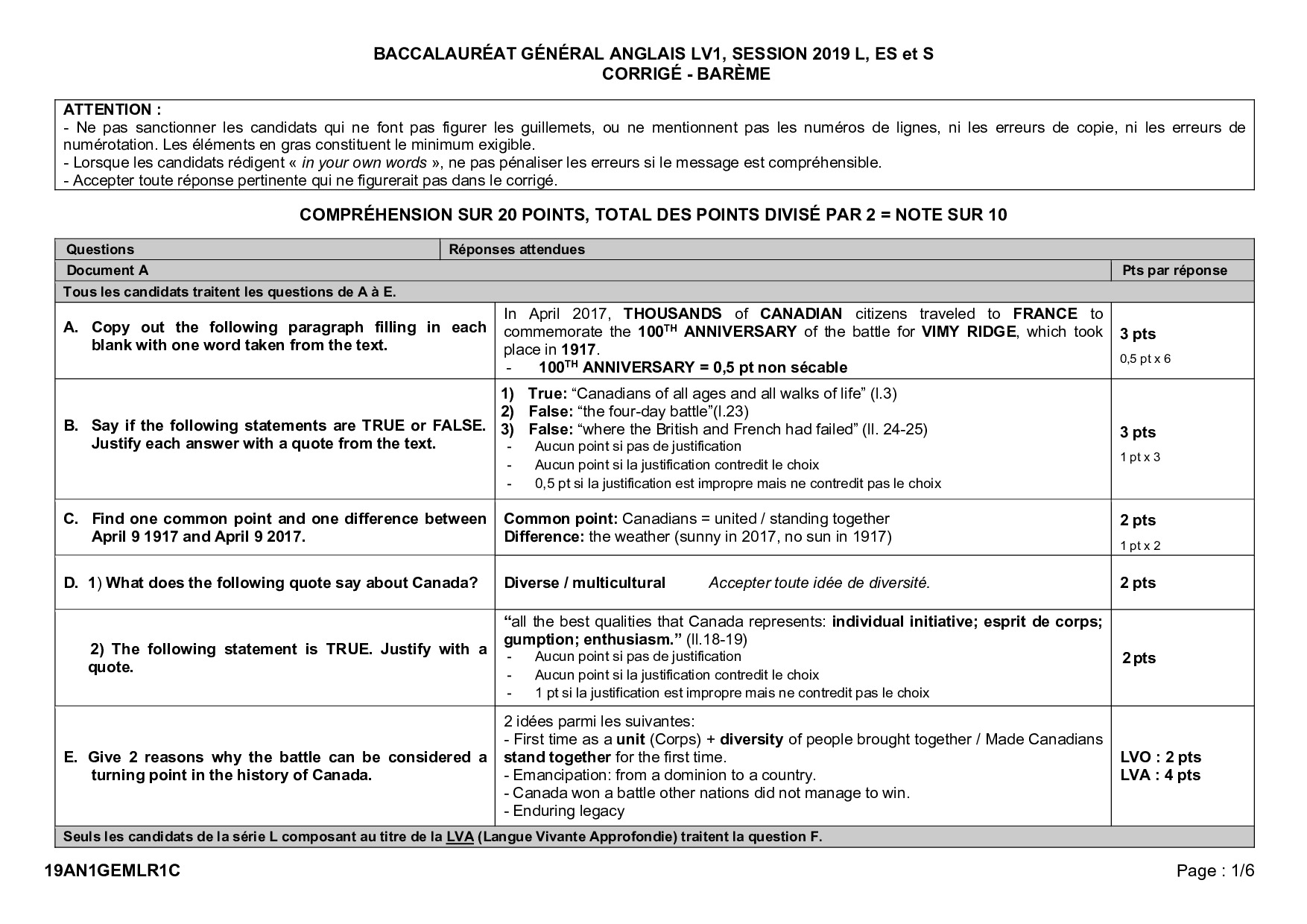 Bac S-ES-L Anglais LV1 Métropole 2019 - Corrigé