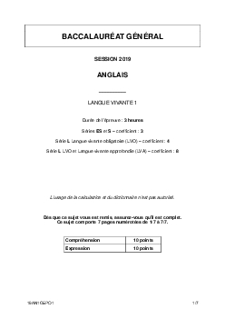 Bac S-ES-L Anglais LV1 Polynésie 2019 - Sujet