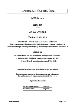 Bac S-ES-L Anglais LV2 Métropole 2019 - Sujet