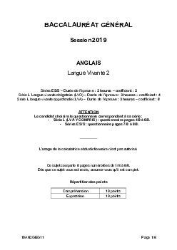 Bac S-ES-L Anglais LV2 Centres Etrangers Afrique 2019 - Sujet