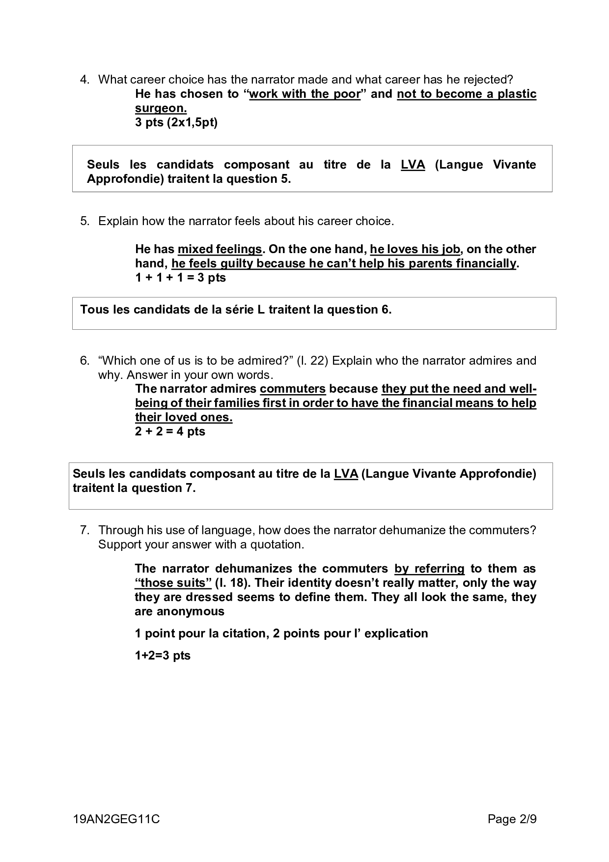 Bac S-ES-L Anglais LV2 Centres Etrangers Afrique 2019 - Corrigé