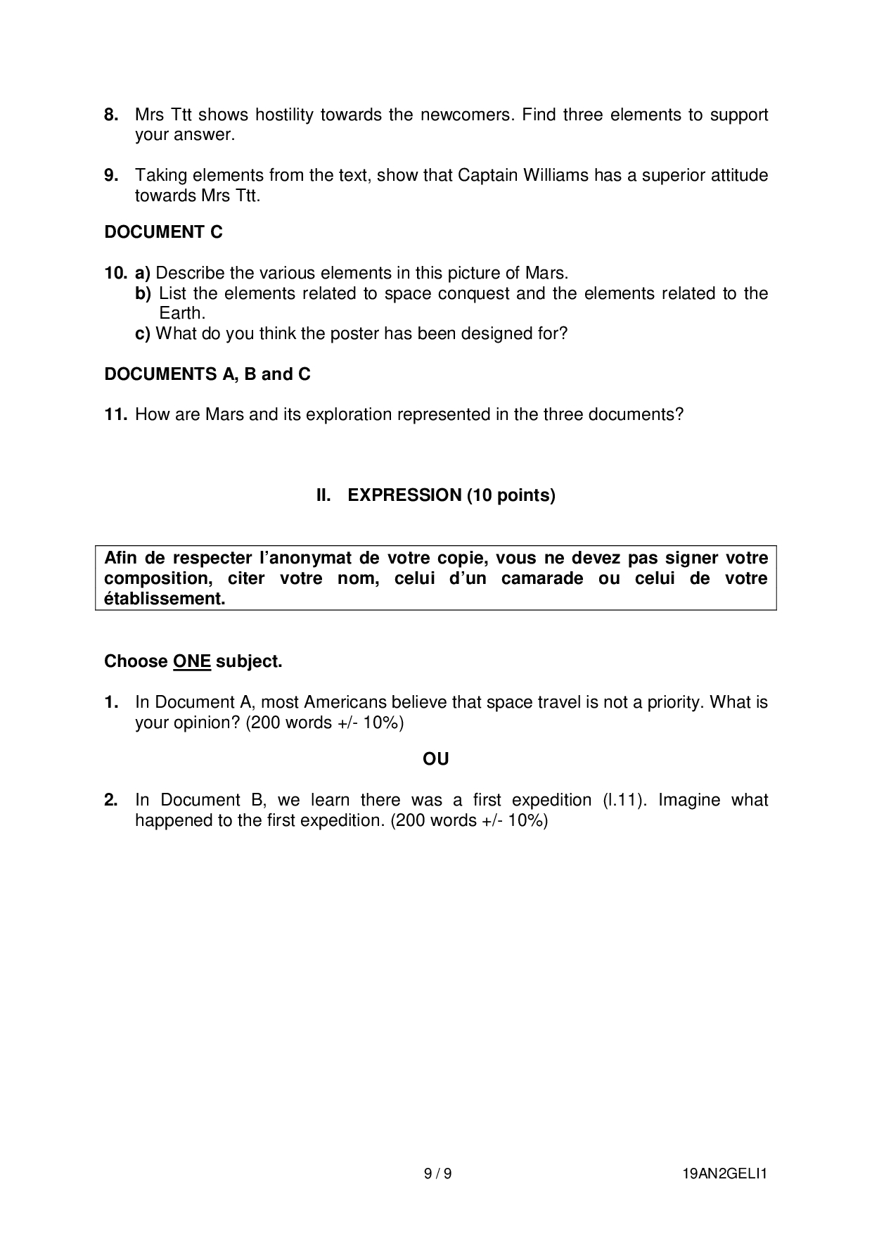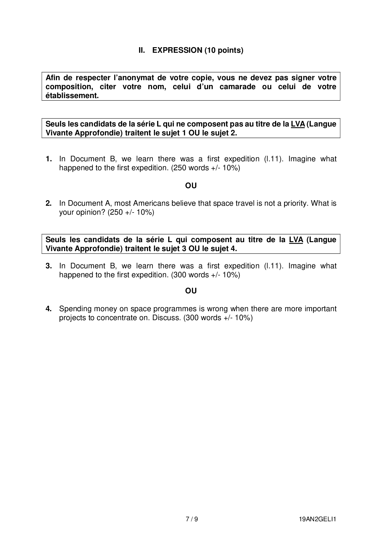 Bac S-ES-L Anglais LV2 Liban 2019 - Sujet