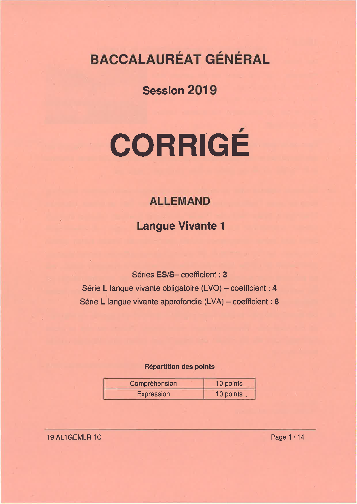 Bac S-ES-L Allemand LV1 Métropole 2019 - Corrigé