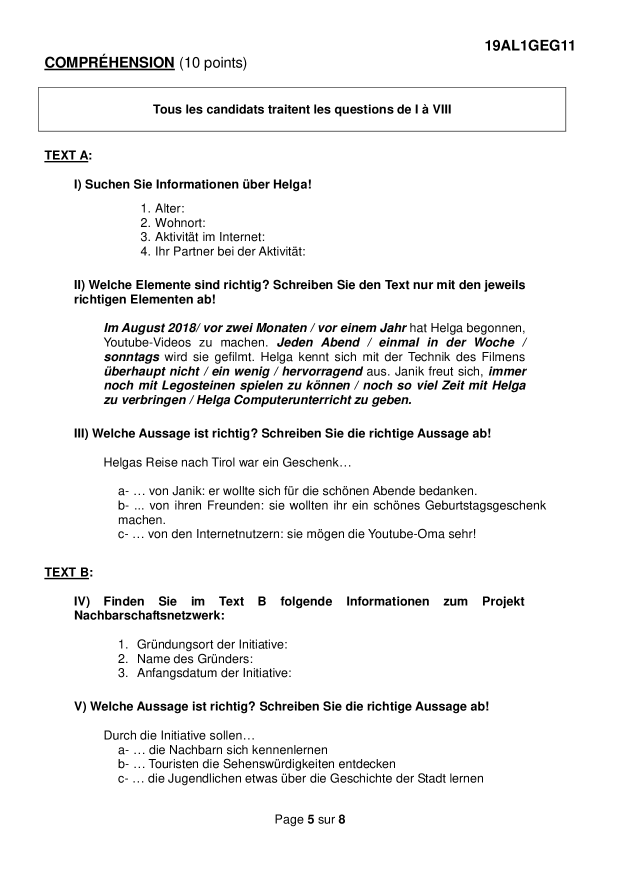 Bac S-ES-L Allemand LV1 Centres Etrangers Afrique 2019 - Sujet