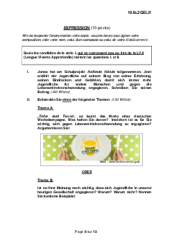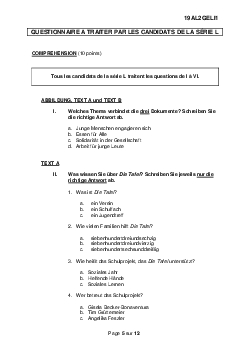 Bac S-ES-L Allemand LV2 Liban 2019 - Sujet