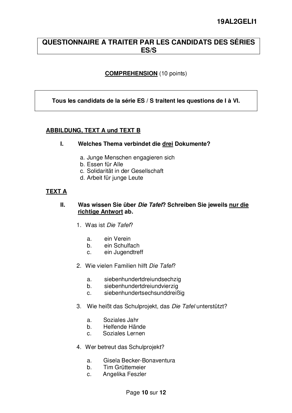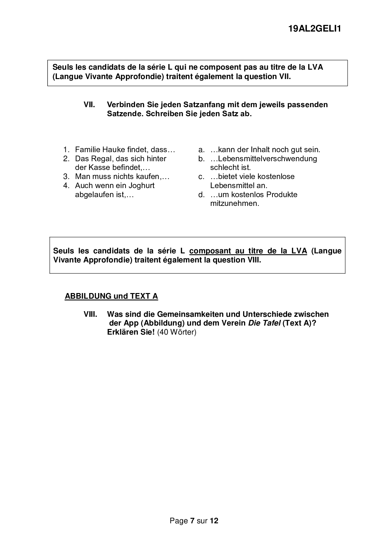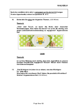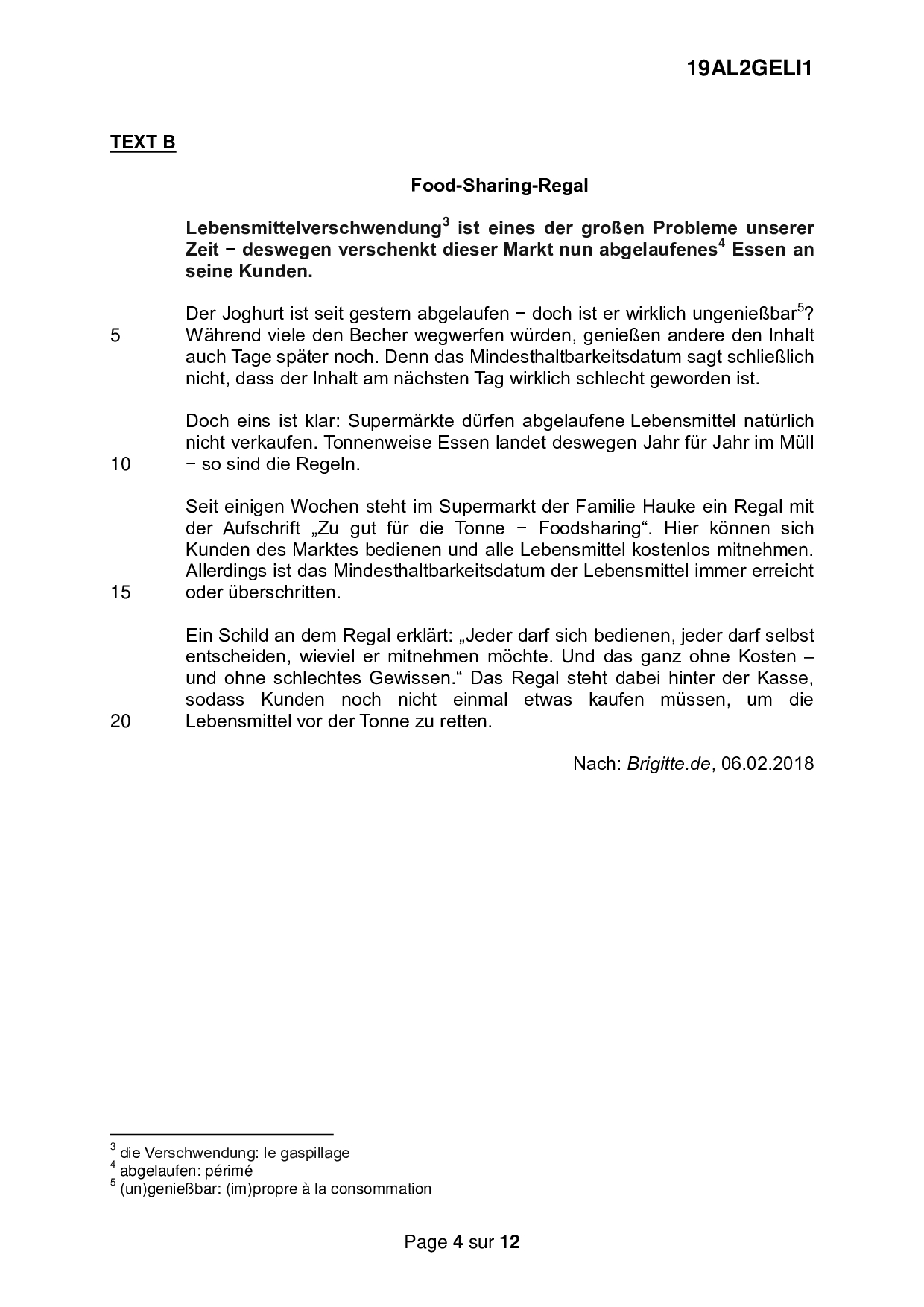 Bac S-ES-L Allemand LV2 Liban 2019 - Sujet