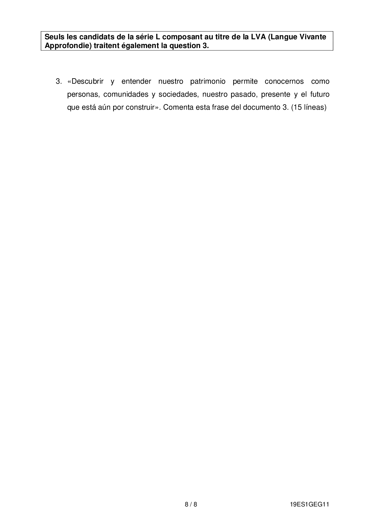 Bac S-ES-L Espagnol LV1 Centres Etrangers Afrique 2019 - Sujet