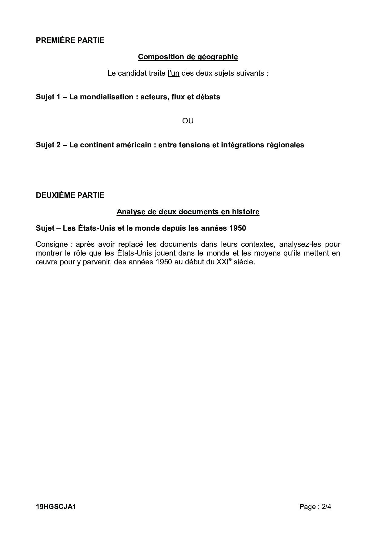 Bac S Histoire Géographie Asie 2019 - Sujet