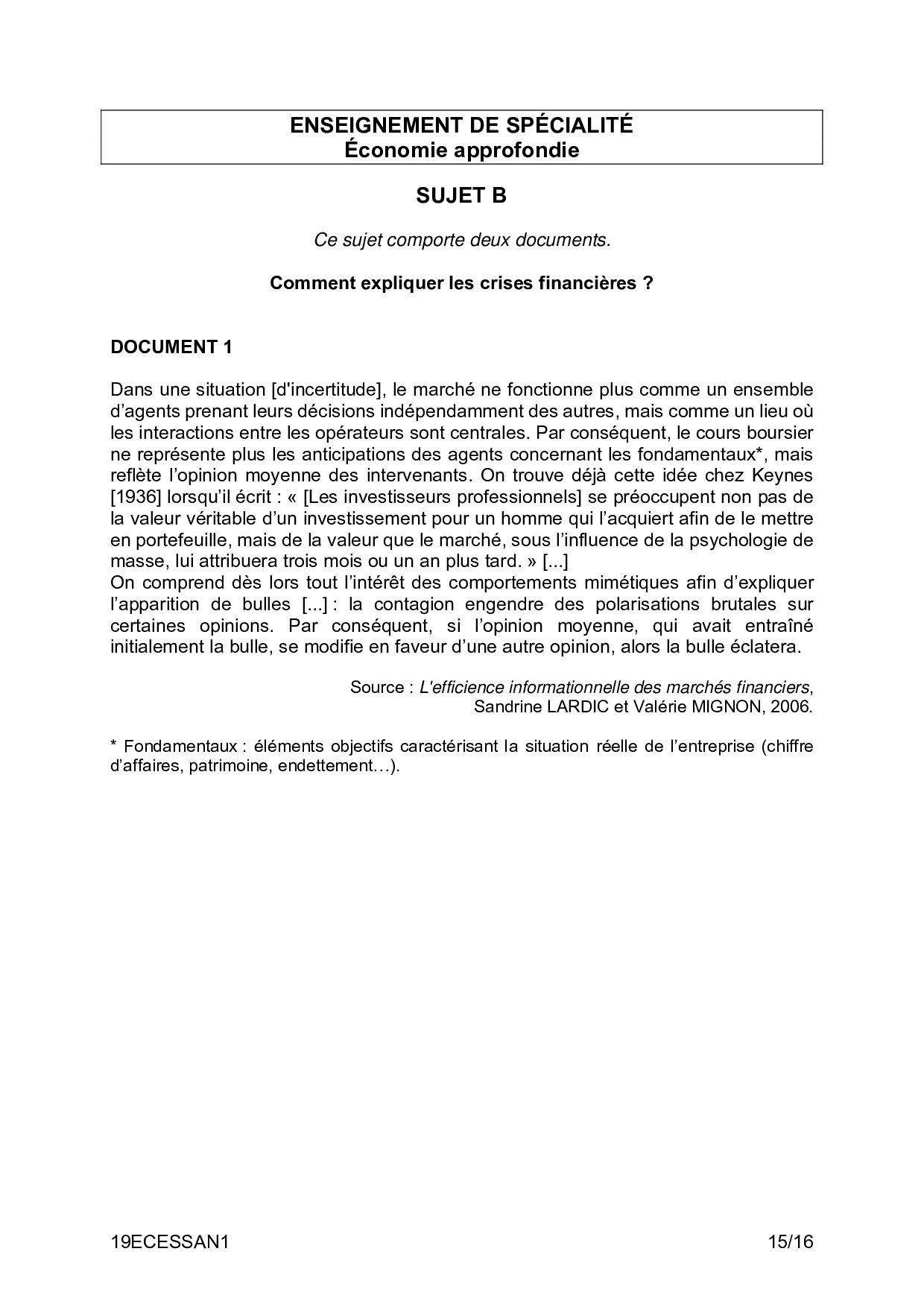 Sciences Economiques et Sociales (SES): Annales Bac ES