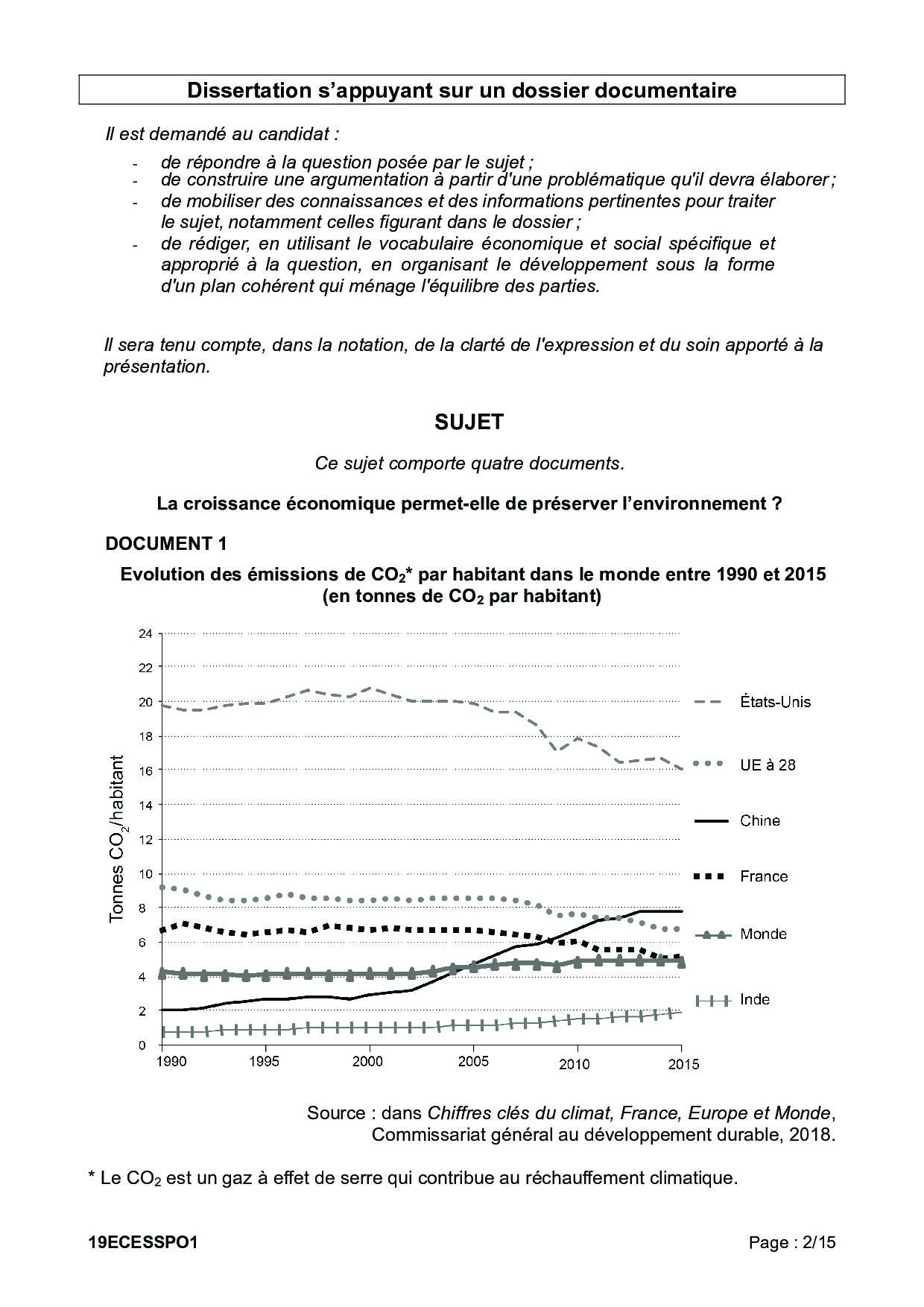 Bac ES Sciences Economiques et Sociales (SES Spécialité) Polynésie 2019 - Sujet