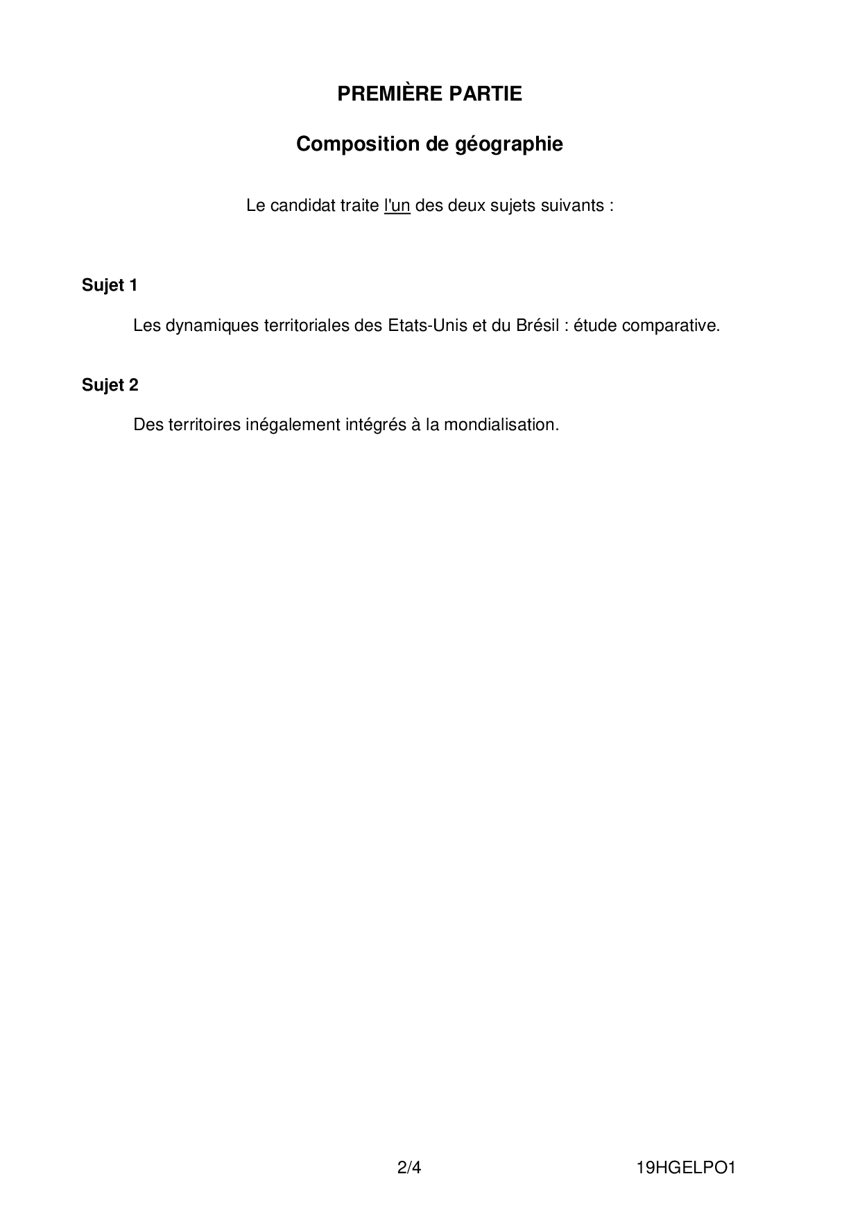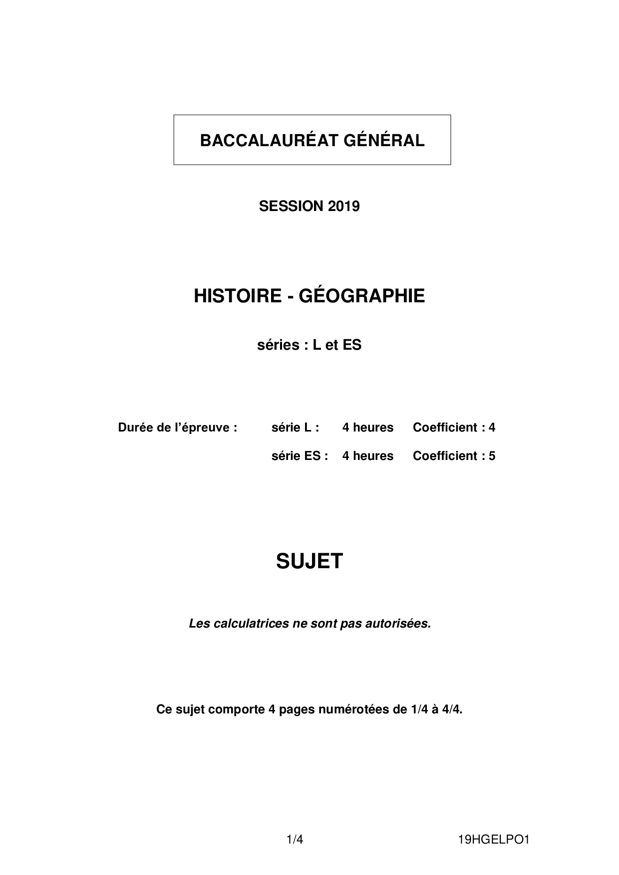 Bac ES-L Histoire Géographie Polynésie 2019 - Sujet