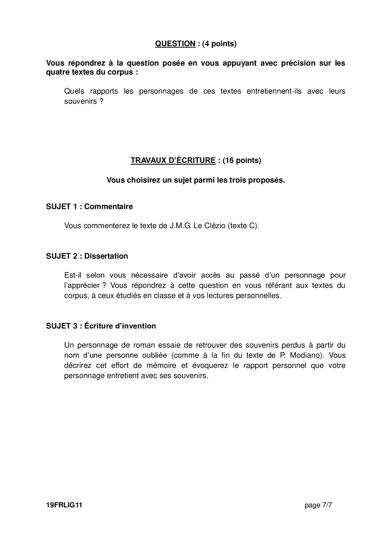 Bac L Français (1ère) Centres Etrangers Afrique 2019 - Sujet
