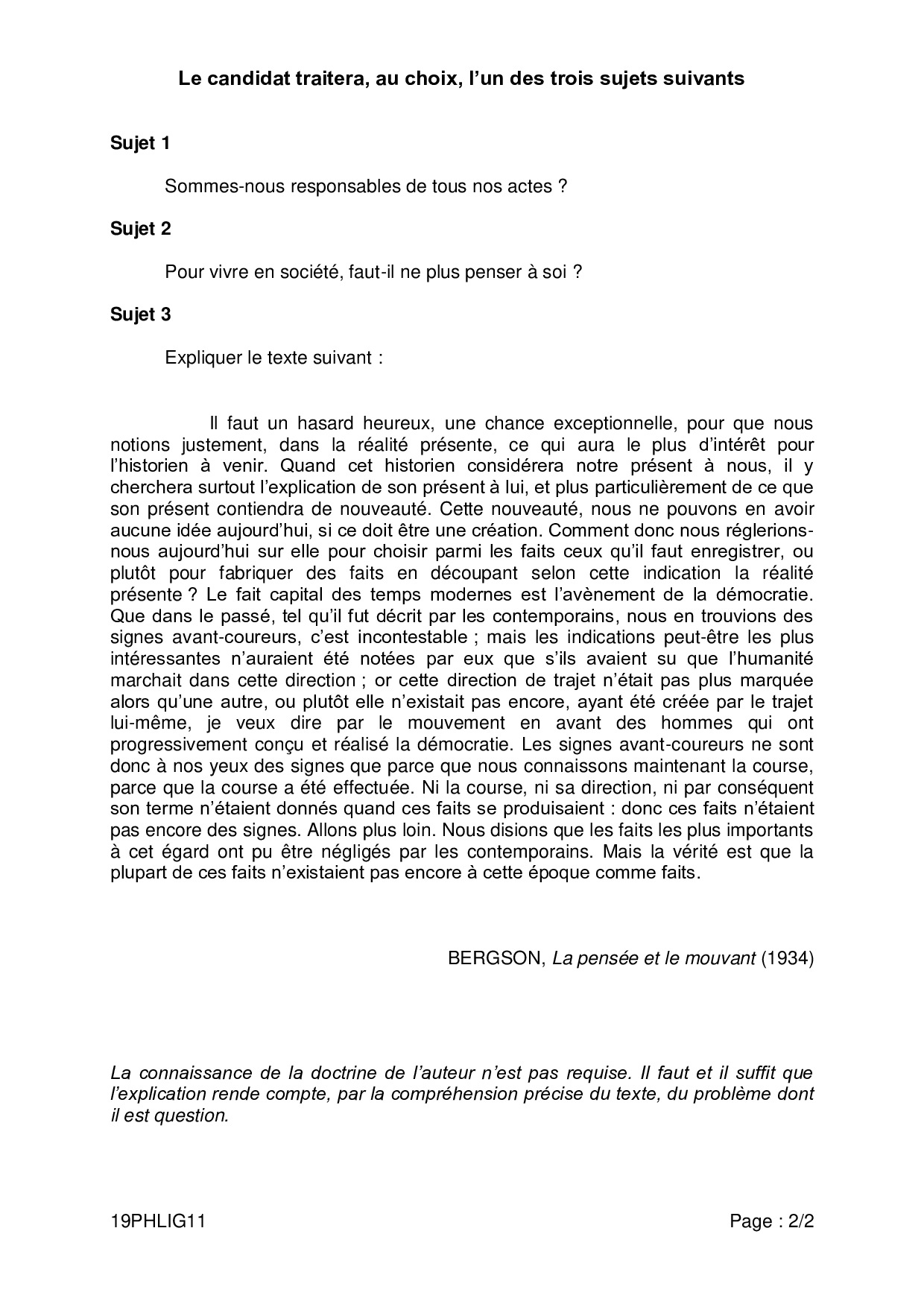 Bac L Philosophie Centres Etrangers Afrique 2019 - Sujet