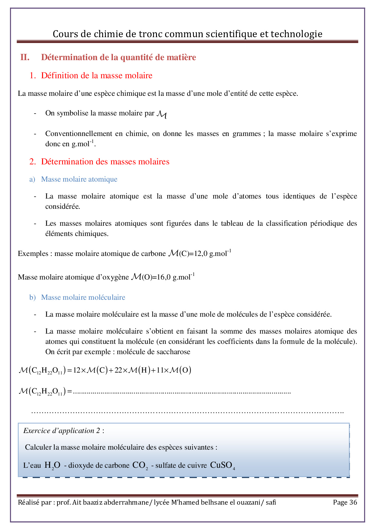 La mole, unité de quantité de matière - Cours 3