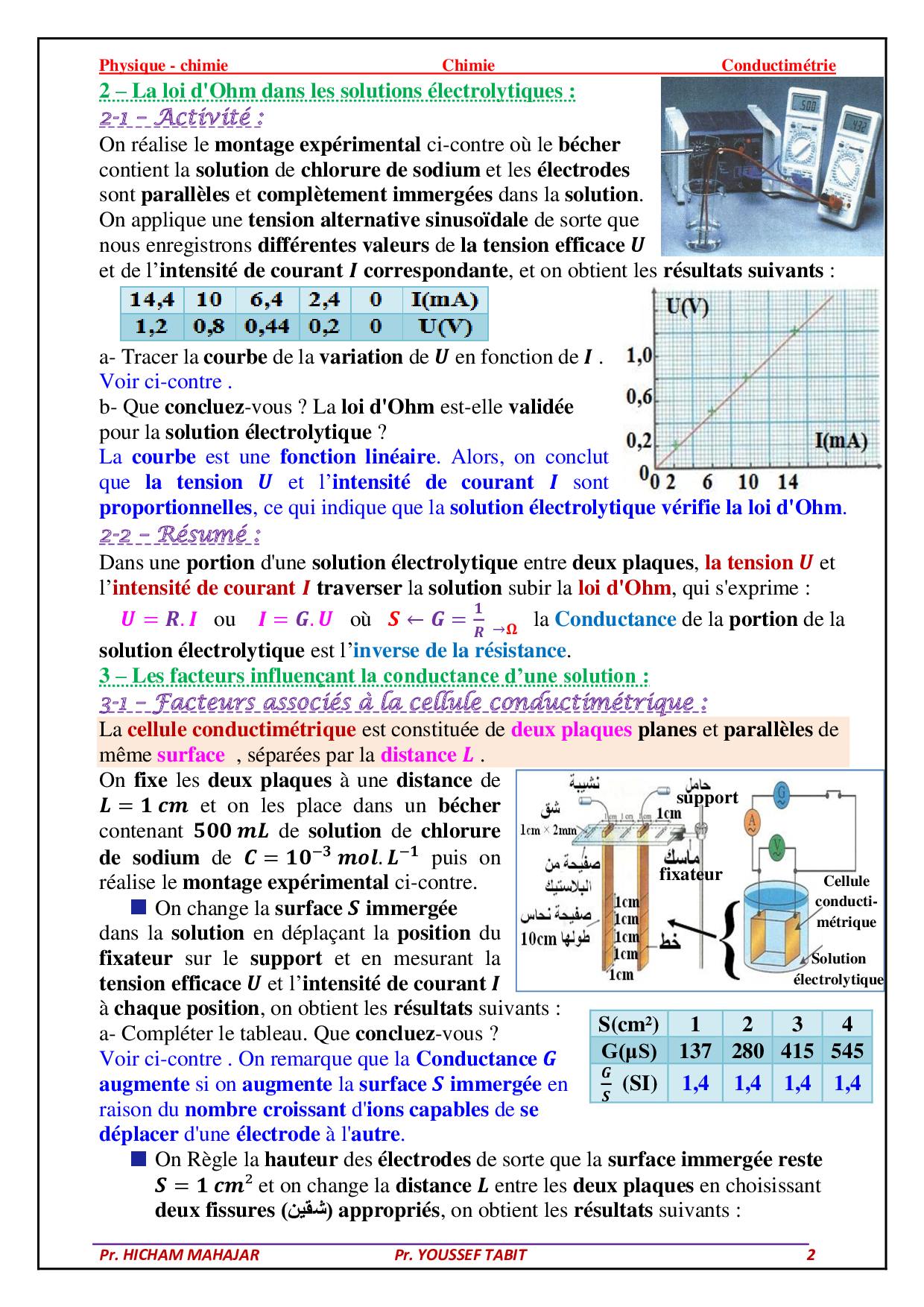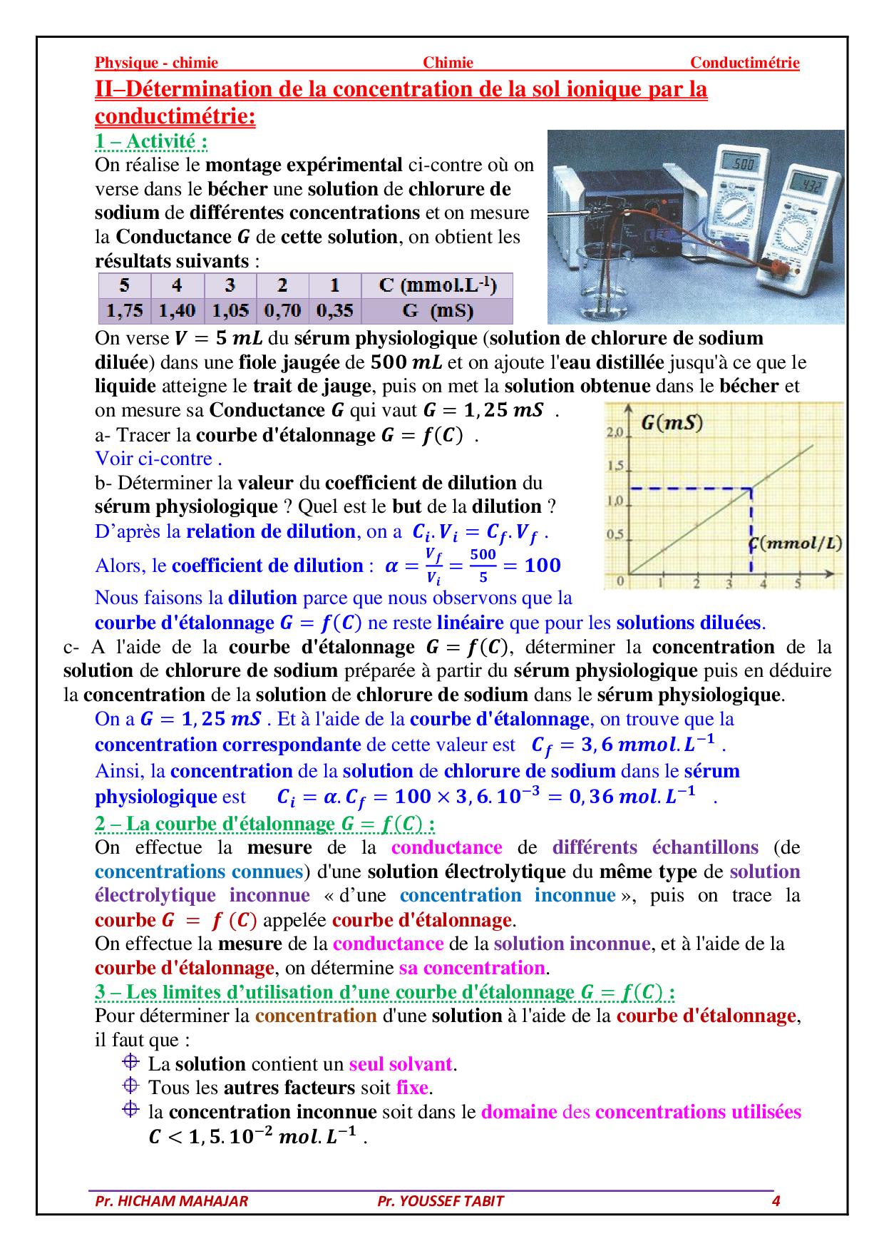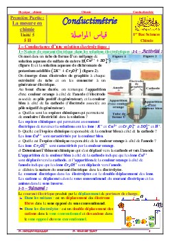 Mesure des quantités de matière en solution par conductimétrie - Cours 1