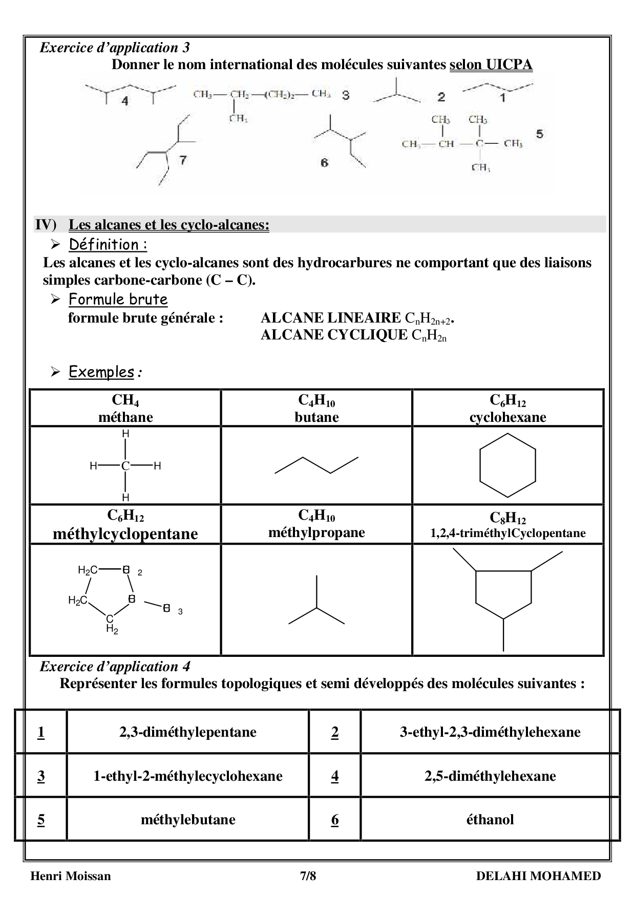 Les molécules organiques et les squelettes carbonés - Cours 2