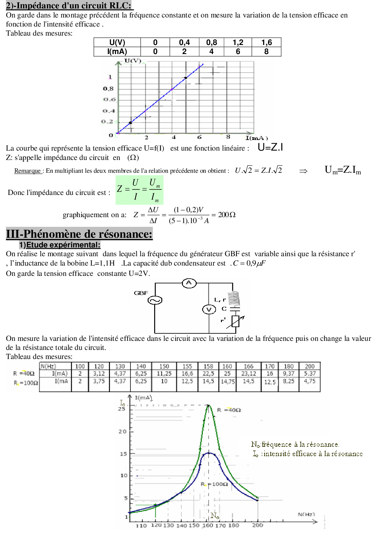 Circuit RLC série en régime sinusoïdal forcé - Cours 2