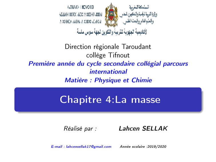 Physique et Chimie 1ère Année Collège