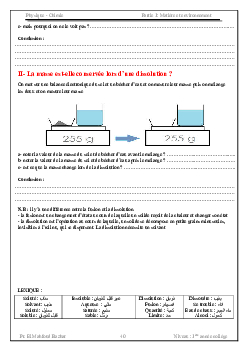 Les mélanges - La dissolution dans l'eau - La séparation des constituants d'un mélange - Le corps pur et ses caractéristiques